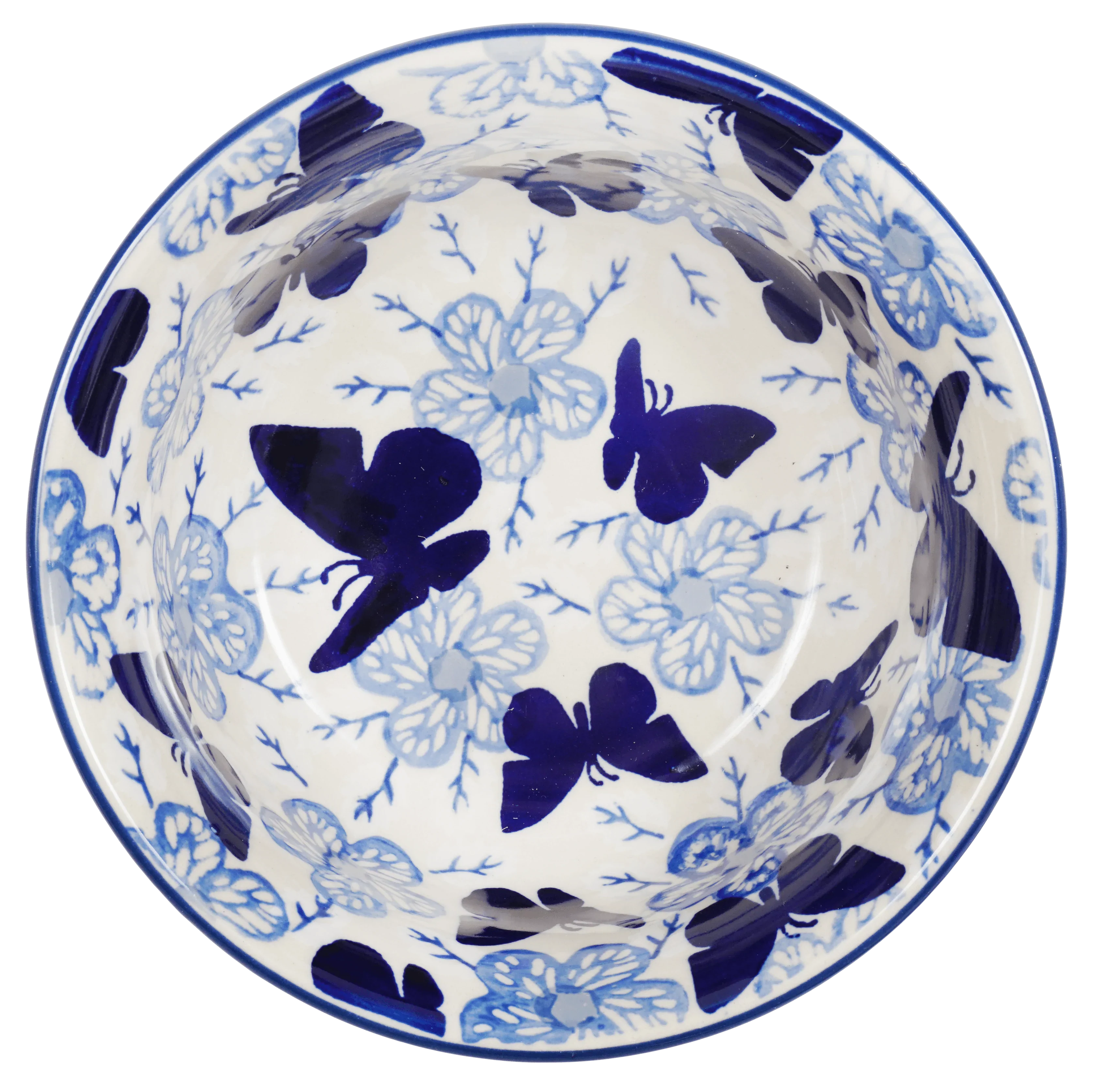 The "Blue Butterfly" pattern is a true work of art, with its intricate design elements incorporating butterflies and flowers. The predominantly blue color with accents in white adds a touch of whimsy and charm to any table setting. And the best part? Each bowl is made and hand-painted in Boleslawiec, Poland by skilled artisans, ensuring that you are getting a piece of pottery that is both functional and beautiful.
