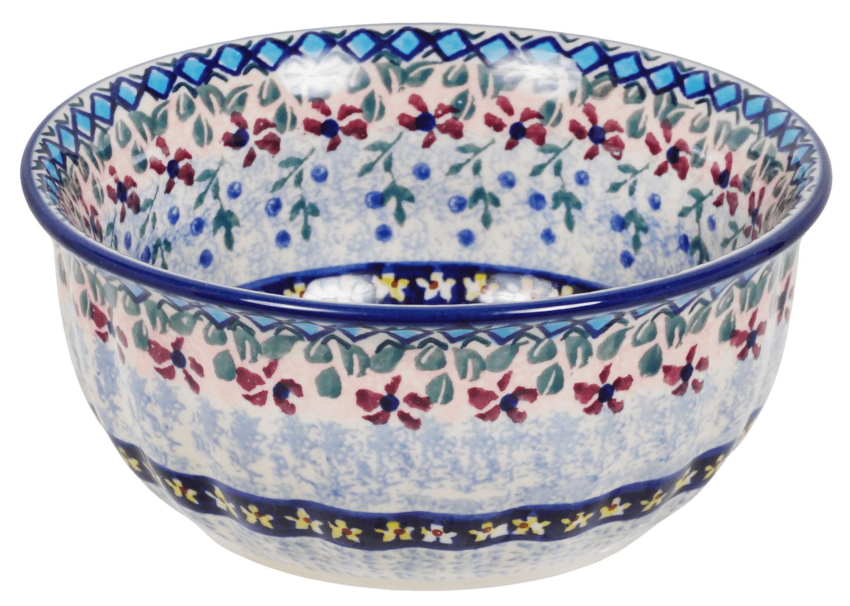 Introducing the stunning Polish Pottery 5.5" Bowl by Manufaktura, now available in the captivating "Lilac Fields" pattern (WK75). This versatile bowl is the perfect addition to your kitchenware collection, as it can be used for soups, cereal, ice cream, side salads, or even individual desserts! Say goodbye to boring meals and hello to a burst of color and style with this exquisite piece.