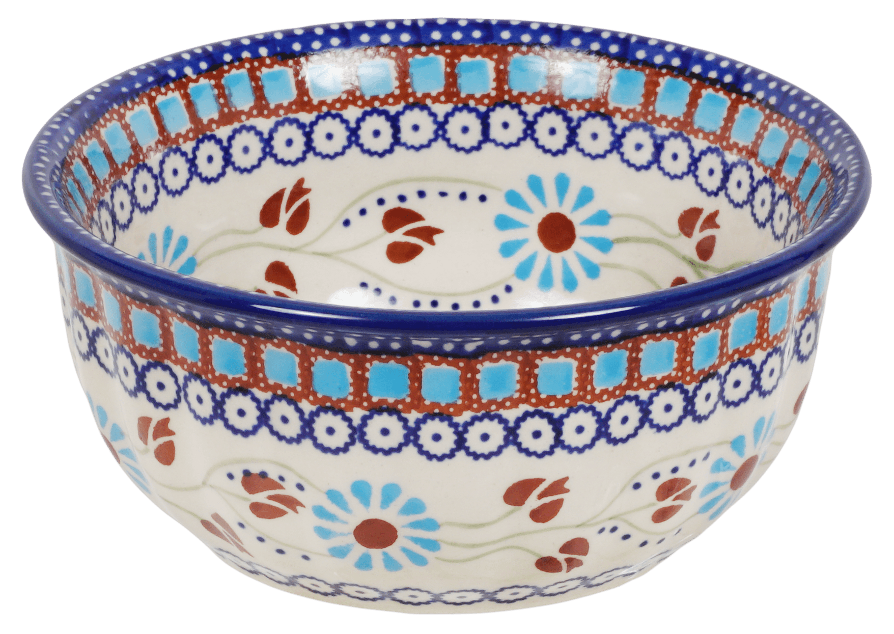 Looking to add a touch of elegance and charm to your dining experience? Look no further than the Polish Pottery 5.5" Bowl by Manufaktura in the "Sky Blue Shasta" pattern. This versatile bowl is perfect for soups, cereal, ice cream, side salads, or individual desserts - the possibilities are endless!