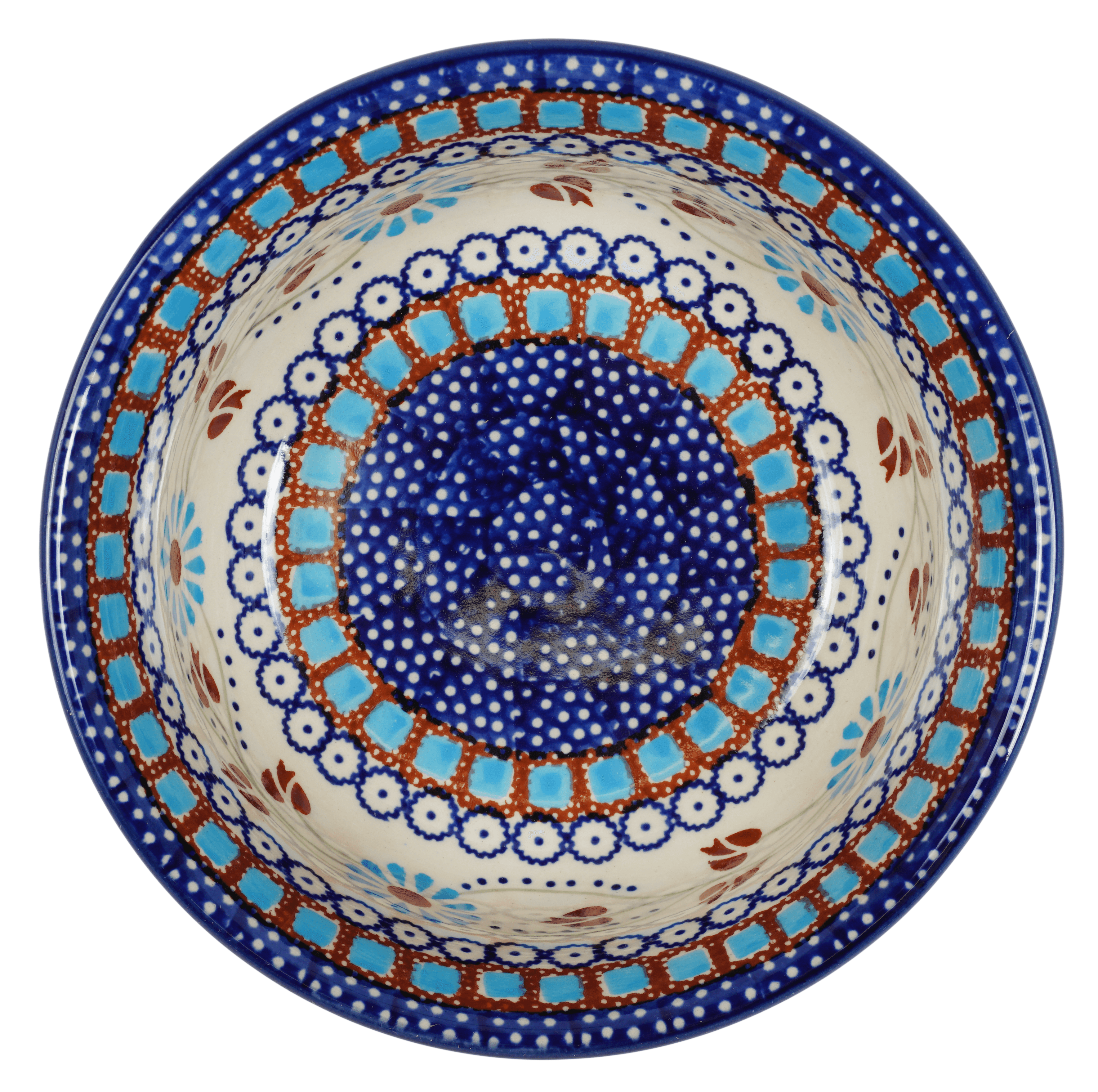 Made and hand-painted in Boleslawiec, Poland by skilled artisans, this bowl is not only beautiful but also functional. It is food and beverage safe, as well as safe for use in the dishwasher, refrigerator, microwave, freezer, and oven (up to 425 degrees). The high-quality materials used are tough, durable, and chip-resistant, making this bowl a long-lasting addition to your kitchen.