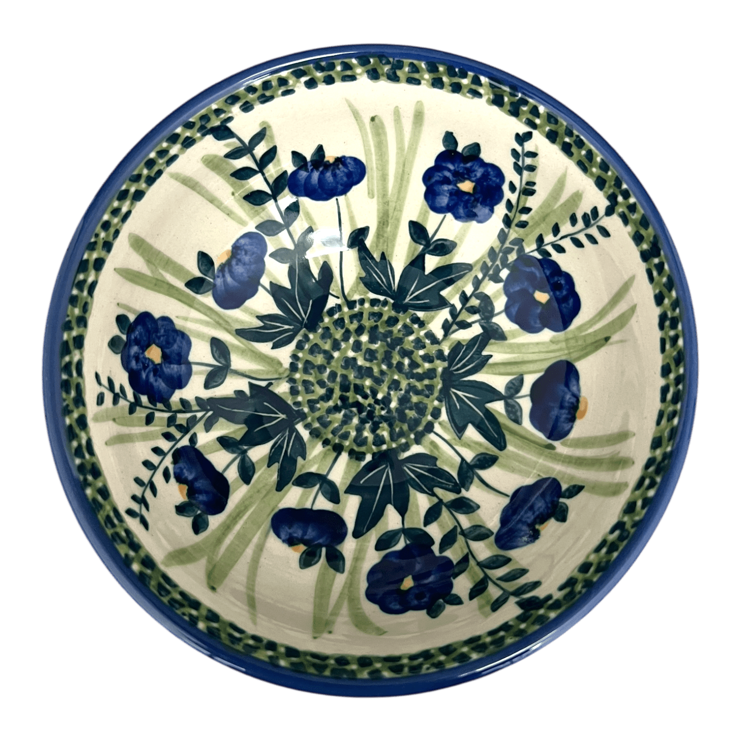 Introducing the Polish Pottery 6" Bowl by Manufaktura in the captivating "Bouncing Blue Blossoms" pattern (IM03). This delightful piece is not only one of our most popular items, but it also brings a touch of charm to any occasion! With its versatile size, the 6" Bowl is perfect for all your culinary cravings. Whether you're indulging in a hearty bowl of cereal, savoring a steaming bowl of soup, or enjoying a fresh salad, this bowl has got you covered!