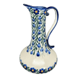 This particular pattern is celebrated for its traditional artistry, a style deeply rooted in the heritage of Polish pottery. Known for its simplicity and charm, the "Modern Blue Cascade" employs the "punching" technique—a method where skilled artisans hand-stamp each design with a keen eye for detail, inspired by the natural world around them. Although considered simpler due to the unrestricted production, each pitcher holds a unique essence as different artists bring their individual touch to the design. Standing 9.5 inches tall and holding 3.25 cups, this pitcher is not just a vessel; it's a showcase of craftsmanship and tradition, each variation telling its own story.
