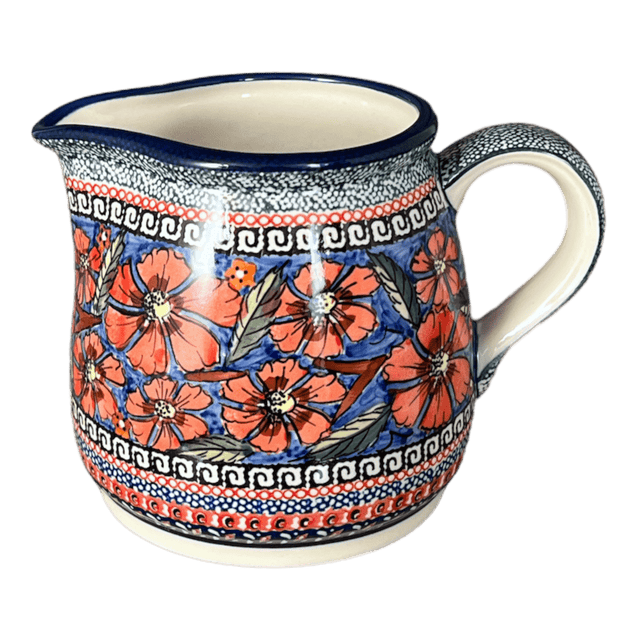 The "Exotic Reds" pattern is a true work of art, with its design elements incorporating beautiful florals in a predominantly red color palette, accented by pops of blue and green. It's like having a piece of Poland's rich cultural heritage right in your own home. Each pitcher is meticulously made and hand-painted in Boleslawiec, Poland by skilled artisans who have honed their craft for generations. The result? A pitcher that not only looks beautiful but also exudes exceptional quality.