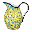 Imagine pouring a refreshing glass of lemonade, water, or even a vibrant margarita from a stunningly crafted Polish Pottery Pitcher by Zaklady. This isn't just any pitcher; it's a masterpiece from the "Sunny Meadow" collection, adorned with large, cheerful yellow flowers and delicate blue blossoms set against a verdant green, leafy backdrop. Each pitcher, standing proud at 8 inches tall with a generous 1.7-liter capacity, is not just a vessel but a centerpiece that promises to brighten any table setting. Hand-painted in Boleslawiec, Poland, by highly skilled artisans, this pitcher marries traditional craftsmanship with a burst of garden freshness, right into your home.