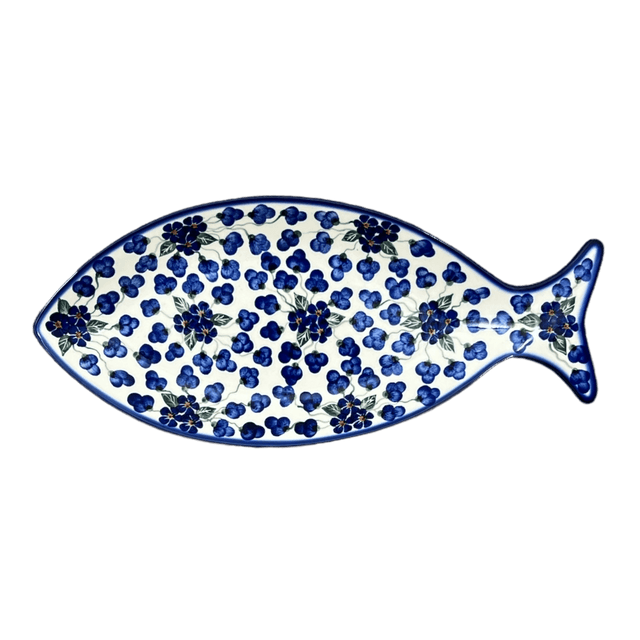 Plate, Fish-Shaped, 14.5" x 6.5", WR (WR13O) in "Blossoms & Berries" by W.R. Ceramika | WR13O-AW1