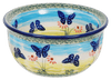 Imagine a piece of pottery that not only serves as a functional dish but also doubles as a stunning centerpiece, exuding charm and artistry. Enter the Polish Pottery Bowl from Manufaktura, a marvel in medium size at 7.75 inches, crafted in a unique square shape that captures the eye. Perfect for those cozy evenings by the sofa during your favorite sports events, this nut dish is a fusion of utility and beauty. Hand-painted in the picturesque town of Boleslawiec, Poland, this dish features the enchanting "Butterflies in Flight" pattern—a vibrant tableau of butterflies dancing among flowers, set against a lively background of blue, accented with touches of yellow, green, and orange.