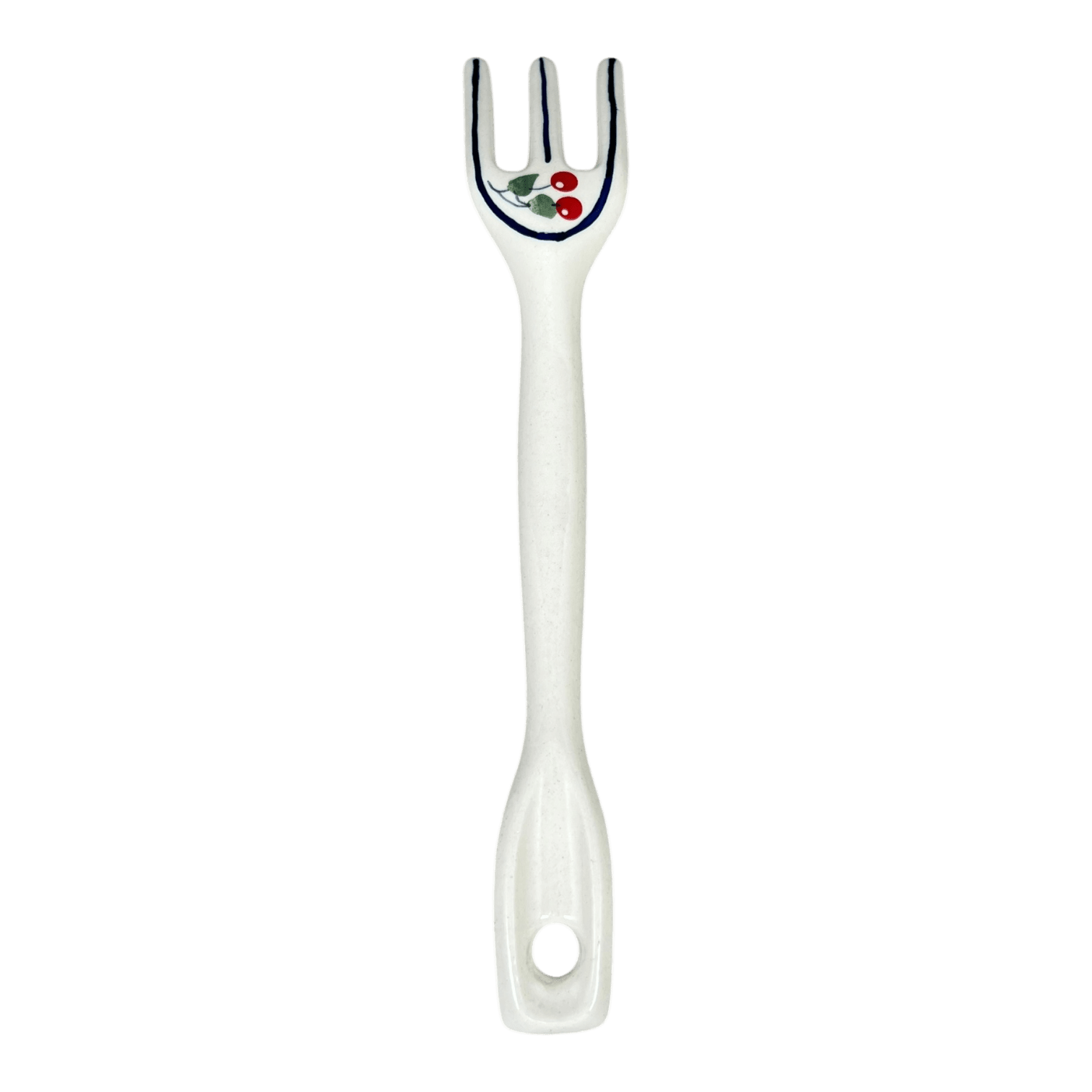 Imagine serving your delicious salads or sumptuous pastas with a touch of whimsical elegance! Introducing the Manufaktura Polish Pottery Serving Fork, a masterpiece that is as functional as it is beautiful. Crafted in the heart of Boleslawiec, Poland, this 12-inch serving fork is adorned with the charming "Cherry Dot" pattern. Picture vibrant red cherries and playful white polka dots, all set against a soothing blue background. This design not only captivates the eye but also brings a splash of color and cheer to any dining table.