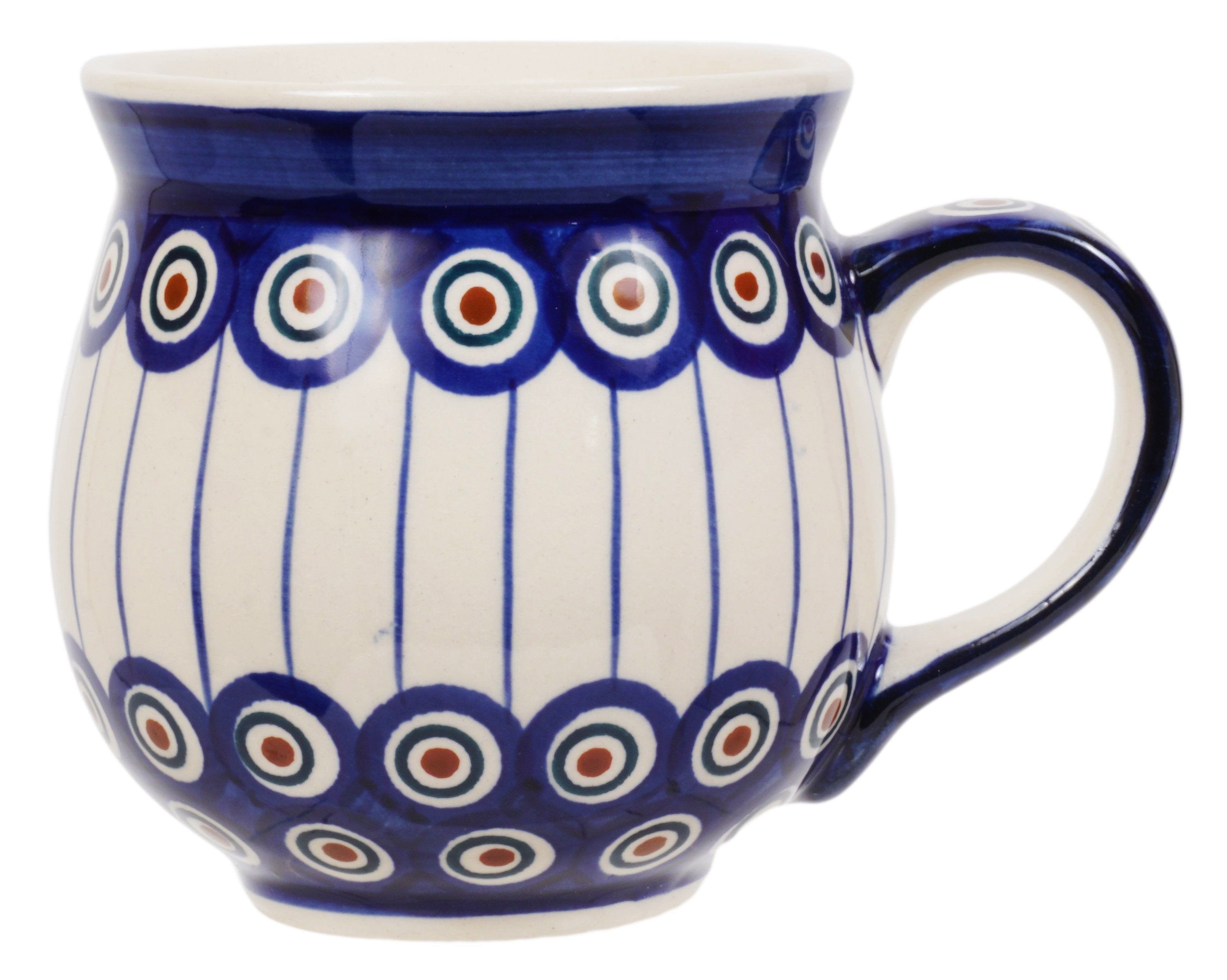 So why settle for ordinary mugs when you can start your day with the extraordinary? Indulge in the beauty and functionality of the Polish Pottery 16 oz. Large Belly Mug in the enchanting "Peacock in Line" pattern. Elevate your morning routine and bring a touch of artistry into your life.