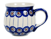 Introducing the Polish Pottery 16 oz. Large Belly Mug by Manufaktura in the captivating "Peacock in Line" pattern (54A). These mugs are not only practical but also beautifully designed to bring joy to your morning routine. With a generous 16 oz. capacity, they hold enough coffee to give you the perfect caffeine kickstart.