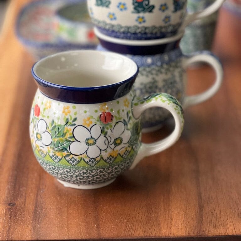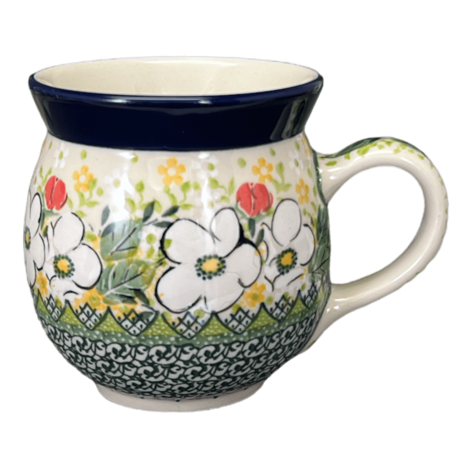 Mug, Belly Mug, 16 oz Large in "White Cosmos" by Ceramika Artystyczna | A073-U4813 is backordered and will ship as soon as it is back in stock.