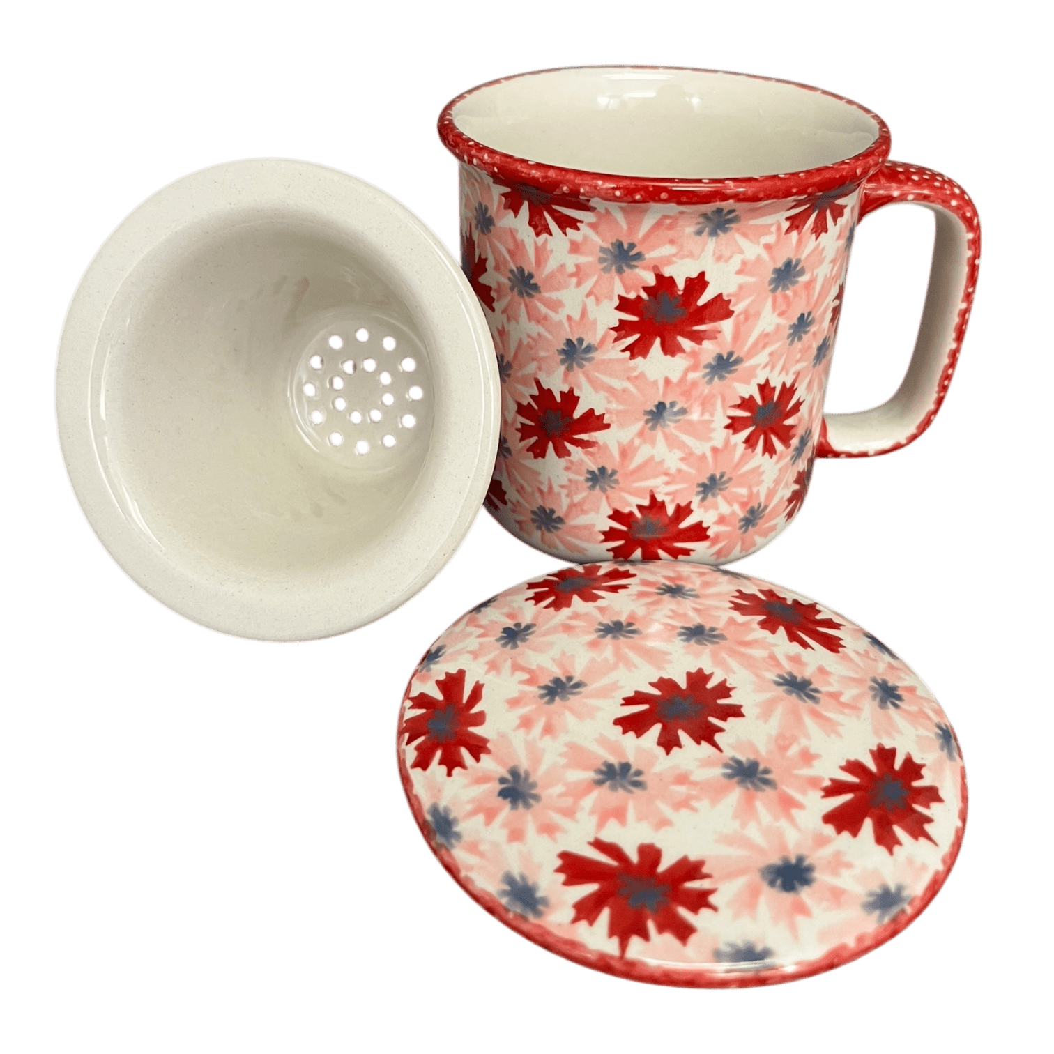 Mug, Tea Infuser Mug, 12 oz in "Scarlet Daisy" by Manufaktura | K073U-AS73 is backordered and will ship as soon as it is back in stock.