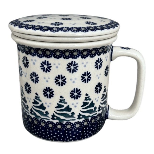 Mug, Tea Infuser Mug, 12 oz in "Snowy Pines" by Manufaktura | K073T-U22 is backordered and will ship as soon as it is back in stock.