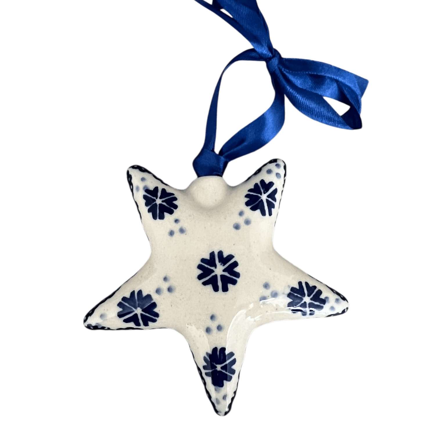 Each ornament is a masterpiece of craftsmanship, brought to life by the skilled hands of artisans using the time-honored "punching" technique of hand stamping. These designs, inspired by the natural beauty of the Polish countryside, are created with a blend of simple yet captivating patterns that have become iconic in the world of Polish pottery. While these patterns are known for their traditional artistry, each piece is unique, reflecting the individual touch of the artists who craft them. This variability ensures that every star ornament you hang on your tree is not just an embellishment but a one-of-a-kind piece of art.