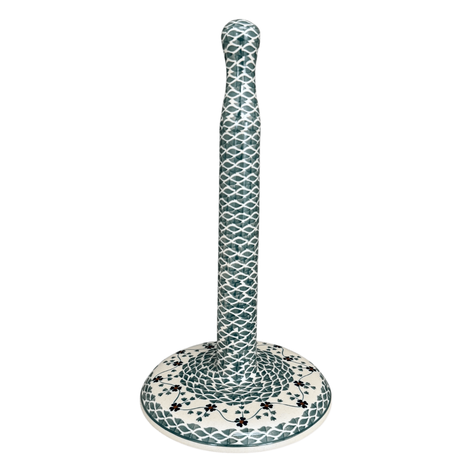 Imagine transforming an ordinary kitchen necessity into a vibrant centerpiece of art! Introducing the Polish Pottery Paper Towel Holder from Manufaktura, measuring a statuesque 14 inches. Crafted in the heart of Boleslawiec, Poland, this holder isn't just a utility item—it's a slice of Polish heritage, painted by hand in the delightful "Woven Pansies" pattern. The design bursts with life, featuring a tapestry of green hues intricately woven around a chorus of petite, playful flowers in white and blue. The traditional artistry showcased in this piece brings the charm of Polish folklore right into your home, turning a simple act of grabbing a paper towel into a moment of cultural appreciation.