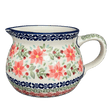 Introducing the charming and robust Polish Pottery Pitcher from Manufaktura, adorned in the delightful "Pink Poinsettia" pattern. This stout 1-liter pitcher, standing proud but not too tall, is your perfect companion for serving everything from rich gravies to sweet syrups at your gatherings. Crafted with a wide base, this pitcher is a true hero at dinner tables prone to little mishaps. It's the go-to vessel when the less-than-graceful guests arrive; swap out your delicate glassware for this sturdy, wide-mouthed beauty and serve up your beverages without a worry!