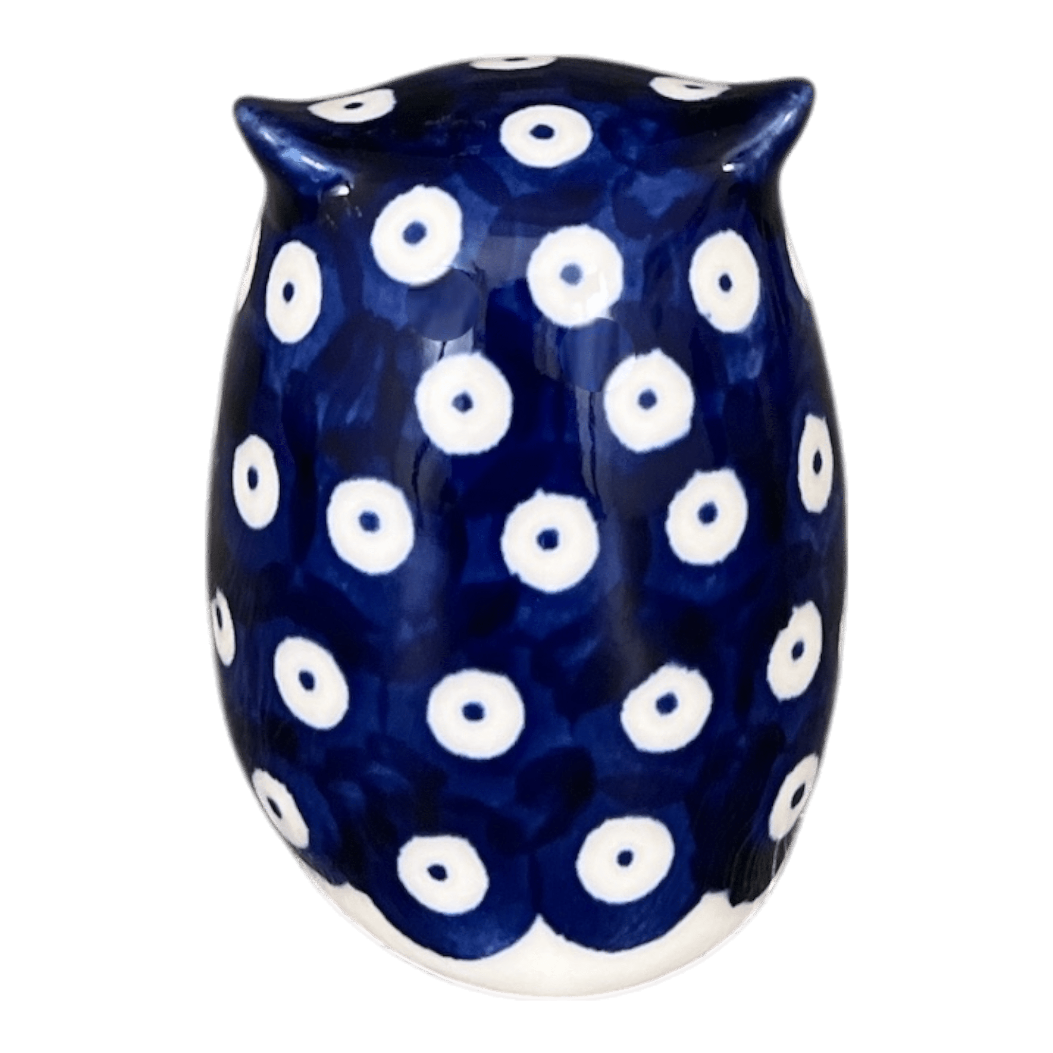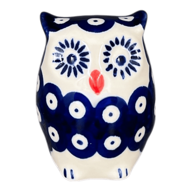 Meet the enchanting Polish Pottery Owl Figurine from W.R. Ceramika, a delightful addition to any room that promises to sprinkle a touch of whimsy and wisdom into your space! Crafted in the heart of Boleslawiec, Poland, by the hands of highly skilled artisans, this charming owl stands proudly at 3 inches tall. Donned in the captivating "Dot to Dot" pattern, this figurine features playful white polka dots that dance across a rich cobalt blue backdrop. It's not just a figurine; it's a little guardian, keeping watch with a wise, twinkling eye over the daily unfoldings of your household.