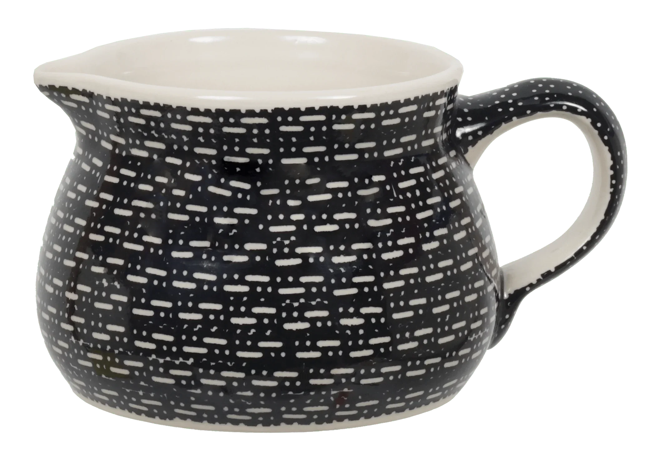 The "Metro" pattern of this pitcher is nothing short of a visual delight, featuring a sophisticated black background with playful white dashes and dots that dance across the surface. Crafted using the time-honored "punching" technique, each piece is a testament to the skill and creativity of highly skilled artists from Boleslawiec, Poland. While it is categorized under Traditional patterns—known for their wide recognition and appeal—each pitcher carries a unique charm, thanks to the slight variations introduced by different artisans. This isn’t just a pitcher; it’s a piece of art that brings a touch of Polish heritage to your table.