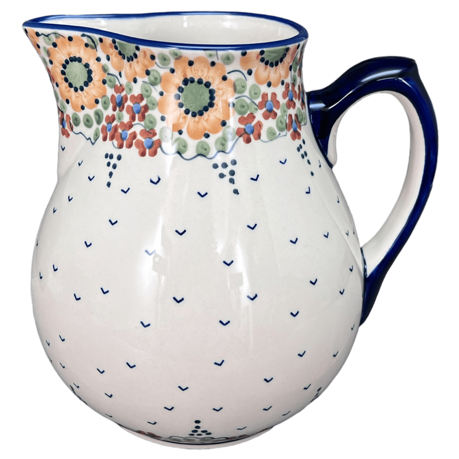 Beyond its stunning looks, this Polish Pottery pitcher offers remarkable durability and versatility. Safe for use in the dishwasher, microwave, refrigerator, freezer, and oven (up to 425 degrees), it's designed to seamlessly adapt to your lifestyle. Whether you're serving a batch of refreshing iced tea on a sunny terrace or a spicy homemade sangria during a cozy autumn evening, this pitcher handles it all with grace. Plus, it's free of lead, nickel, and cadmium, ensuring that it's as safe as it is beautiful. Add a splash of color and a dash of Polish heritage to your home with this functional yet captivating pottery piece.