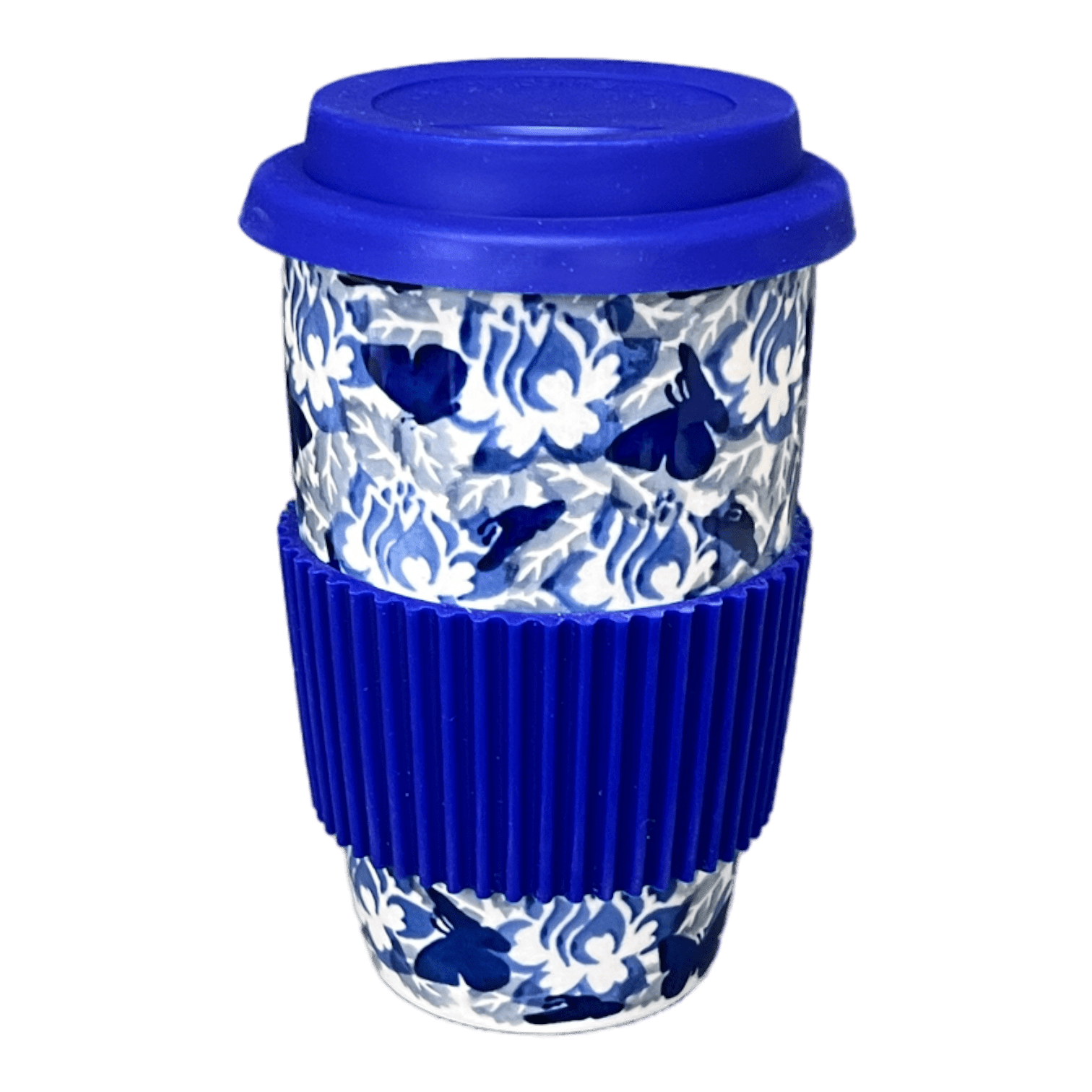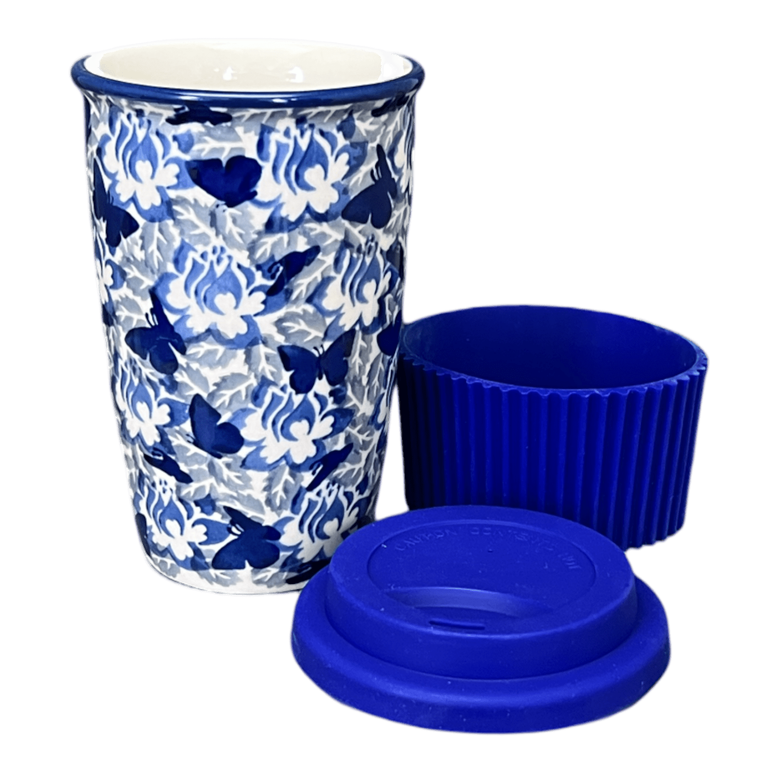 Introducing the Polish Pottery 14 oz. Travel Mug by Manufaktura in the captivating "Dusty Blue Butterflies" pattern (AS56). Are you tired of your boring old travel mugs? Well, it's time to upgrade to these beautiful travel mugs that will not only keep your drinks hot or cold but will also add a touch of elegance to your daily commute!