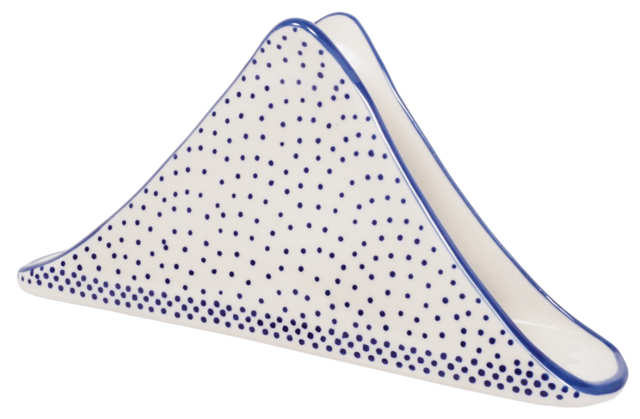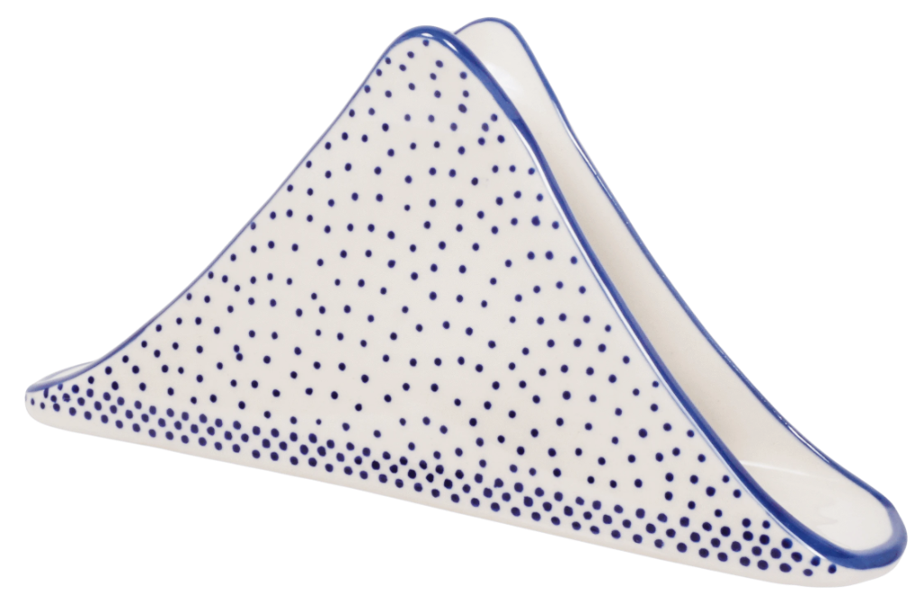 The "Misty Blue" pattern is a canvas of creativity featuring tiny blue dots playfully scattered across a pristine white background. This pattern elevates the napkin holder to a Unikat level of artistry, which in Polish means "Unique." The Unikat designs are the pride of seasoned artisans who, with advanced skills, incorporate intricate details and a richer palette of colors into their creations. Each piece boasts a "UNIKAT" stamp on its base, signifying its authenticity and exclusivity. Crafted with meticulous attention to detail, these pieces are slightly pricier yet infinitely more special and captivating than traditional patterns.