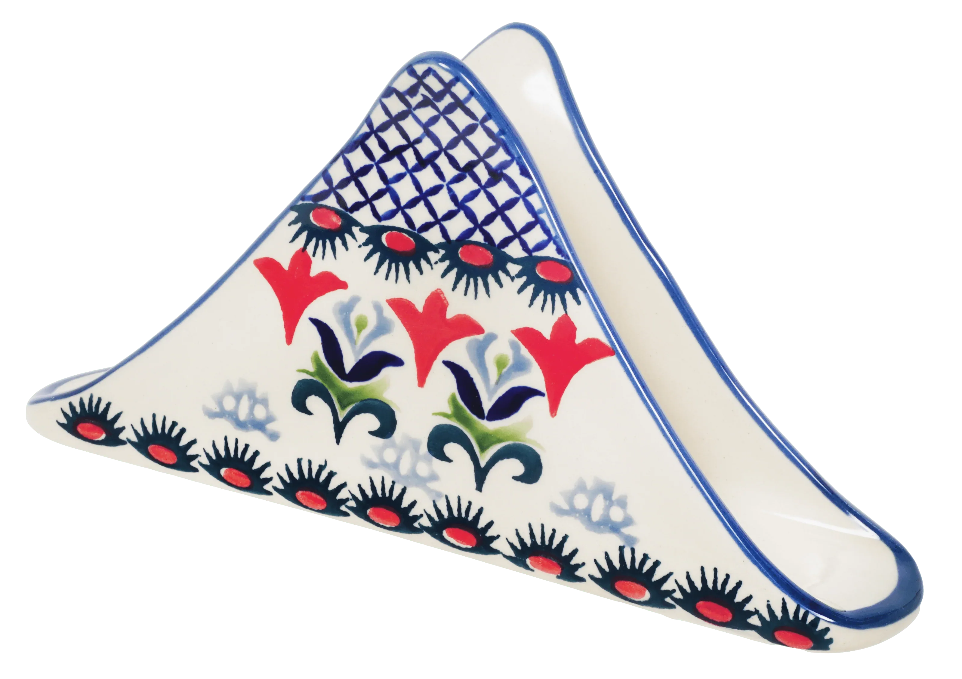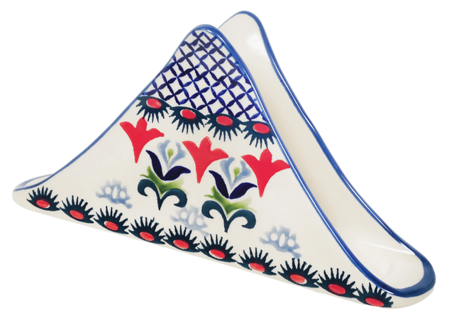 Introducing the exquisite Polish Pottery Napkin Holder from Manufaktura, a gem that brings the artisanal charm of Boleslawiec, Poland, straight to your dining table. Crafted in the captivating "Scandinavian Scarlet" pattern, this napkin holder isn’t just a utility item; it’s a statement piece. With its unique triangle shape measuring 8 inches, it’s perfectly sized for those generously large napkins, ensuring they stay neat and always within reach. Whether it graces your kitchen counter or the dining table, its vibrant design and striking colors promise to add a touch of European elegance to your home decor.