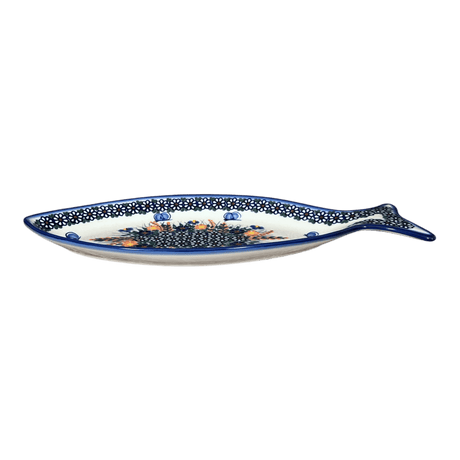 Plate, Fish-Shaped, 14.5" x 6.5", WR (WR13O) in "Blossoms & Berries" by W.R. Ceramika | WR13O-AW1
