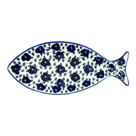 Plate, Fish-Shaped, 14.5" x 6.5", WR (WR13O) in "Pansy Storm" by W.R. Ceramika | WR13O-EZ3