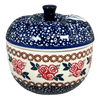 Imagine a kitchen where every meal feels like a celebration, and each dish is served with a splash of color and artistry. Enter the world of the Polish Pottery Baker from Manufaktura, specifically in the enchanting "Parade of Roses" pattern. This delightful 4.5-inch apple baker isn't just a vessel; it's a canvas painted with clusters of simple red roses, encircled by tiny teal leaves on a charming blue background speckled with white dots. Whether you're baking an apple sprinkled with cinnamon and sugar or steaming vibrant vegetables, this baker turns every cooking experience into a festive affair.