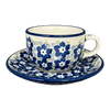 Imagine a touch of timeless elegance gracing your dining table or kitchen counter, with the enchanting "Forget Me Not Bouquet" pattern of this exquisite Polish Pottery Bowl. This 5.5" bowl, expertly crafted by the artisans at Manufaktura in Boleslawiec, Poland, is a true piece of art that serves up charm alongside your favorite dishes. Whether it's a steaming bowl of soup, a refreshing side salad, or a decadent dessert, this bowl turns every meal into a special occasion. The intricate design features large, vivid blue forget-me-not flowers, sprinkled with tiny blue blossoms and lush green leaves, all set against a crisp white background, with a playful border of dark blue polka dots adding a whimsical touch.
