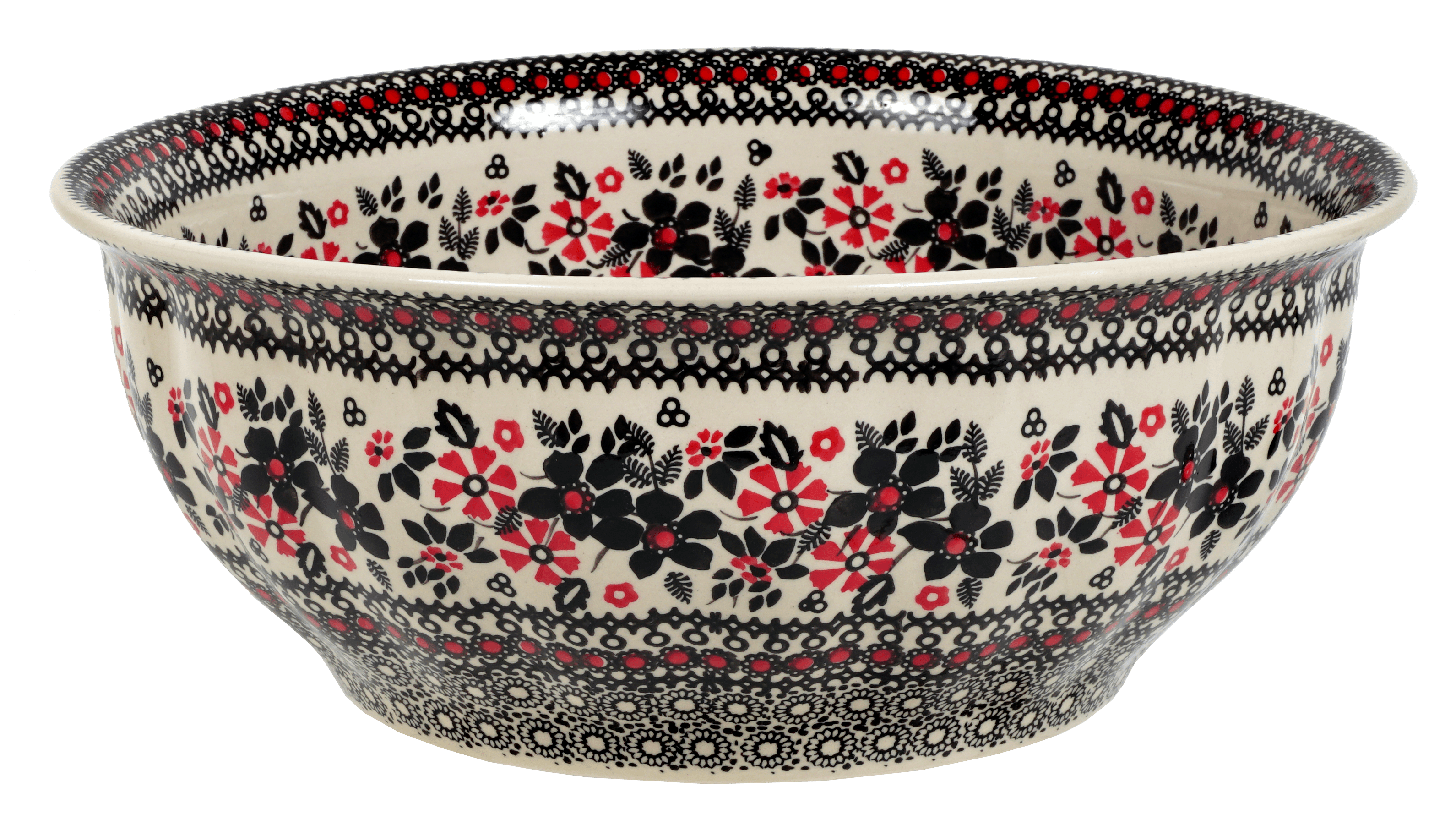 Manufactured by Manufaktura, a renowned producer of Polish pottery since 1992, this bowl is a testament to their commitment to quality and craftsmanship. Their stunning designs and dedication to promoting Polish pottery around the world have earned them a reputation as trendsetters in the industry. Add a touch of Polish charm to your home with the Manufaktura Polish Pottery 11" Bowl in the "Duet in Black & Red" pattern.