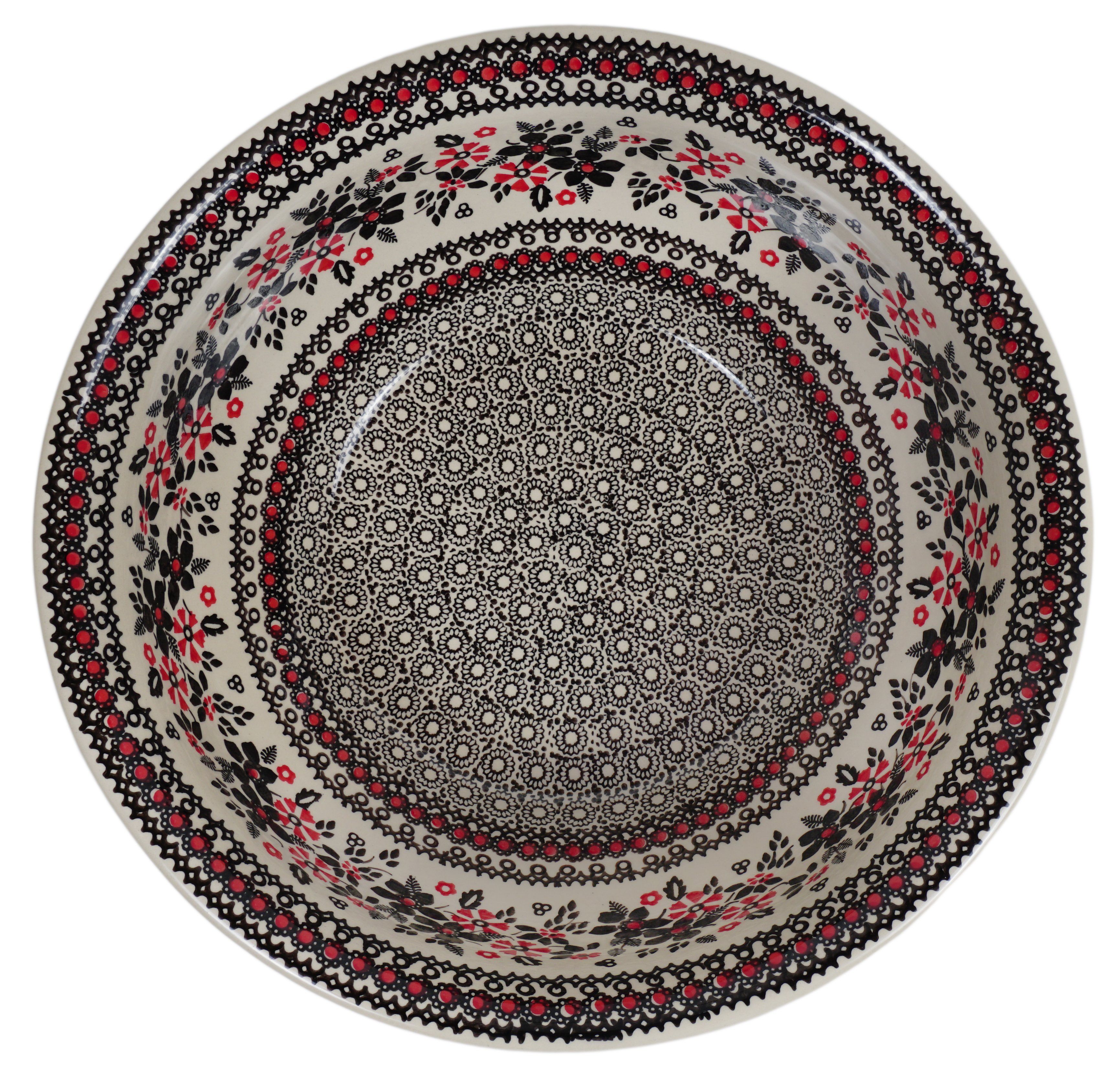 Looking to add a touch of elegance to your next family gathering or dinner party? Look no further than the Polish Pottery 11" Bowl by Manufaktura in the stunning "Duet in Black & Red" pattern. This versatile bowl is perfect for serving up your favorite dishes such as pasta, salads, fruit, popcorn, or chips. Plus, the spacious design allows you to store the rest of the set inside, helping you maximize your cabinet space!