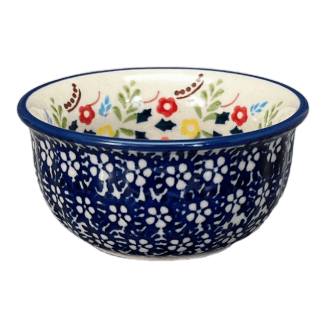 Introducing the Polish Pottery 3.5" Bowl by Manufaktura in the enchanting "Floral Garland" pattern (AD01). This bowl is not only perfect as a ramekin or dipping bowl, but it also adds a touch of elegance to any table setting. The "Floral Garland" pattern showcases a delightful array of design elements, incorporating beautiful flowers in a predominantly Blue color, with accents in Yellow, Red, and Green. It's like having a little piece of a Polish garden right in your own home!