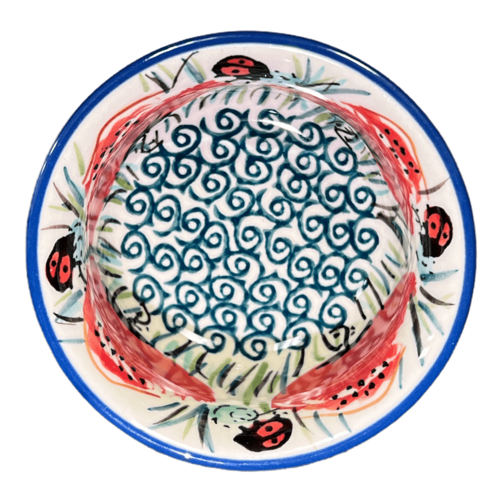 With a capacity and dimensions of 3.5" diameter x 2"h, and a generous 5 oz. size, this bowl is perfectly crafted and hand-painted in Boleslawiec, Poland by skilled artisans. Each piece of Polish Pottery is meticulously created, ensuring both functionality and beauty in every item. This bowl is no exception and will undoubtedly add a touch of elegance to your home.