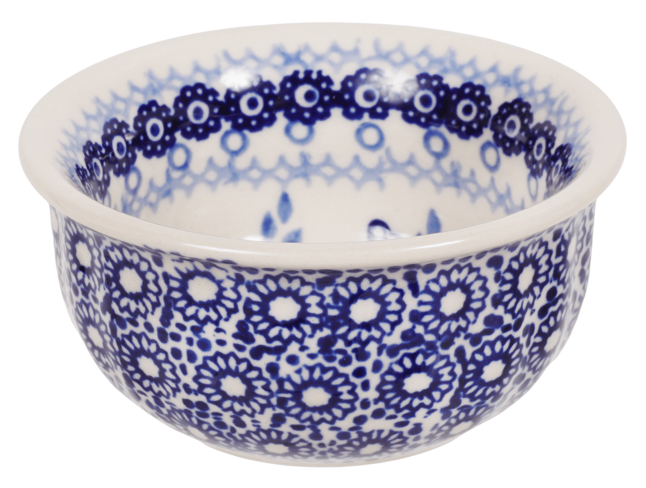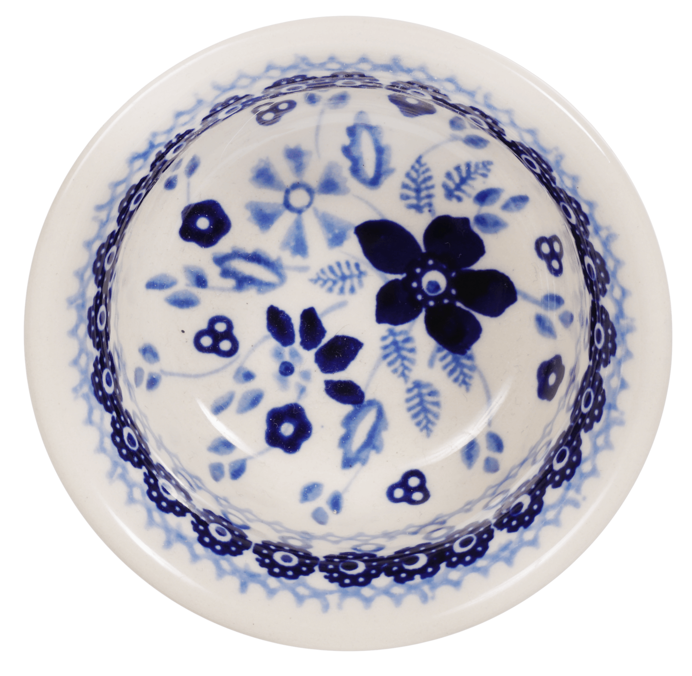 Immerse yourself in the charm of authentic Polish craftsmanship with the exquisite Manufaktura Polish Pottery Bowl. This delightful 3.5" round bowl, part of the enchanting "Duet in Blue" collection, is a small masterpiece perfect for serving dips or using as a ramekin. Each piece is meticulously hand-painted in Boleslawiec, Poland, by skilled artisans who bring the magic of rich traditions into your home. The bowl features the mesmerizing "Duet in Blue" pattern, with its lovely white background adorned by a symphony of blue and white blossoms, all framed by delicate blue floral accents along the edges.