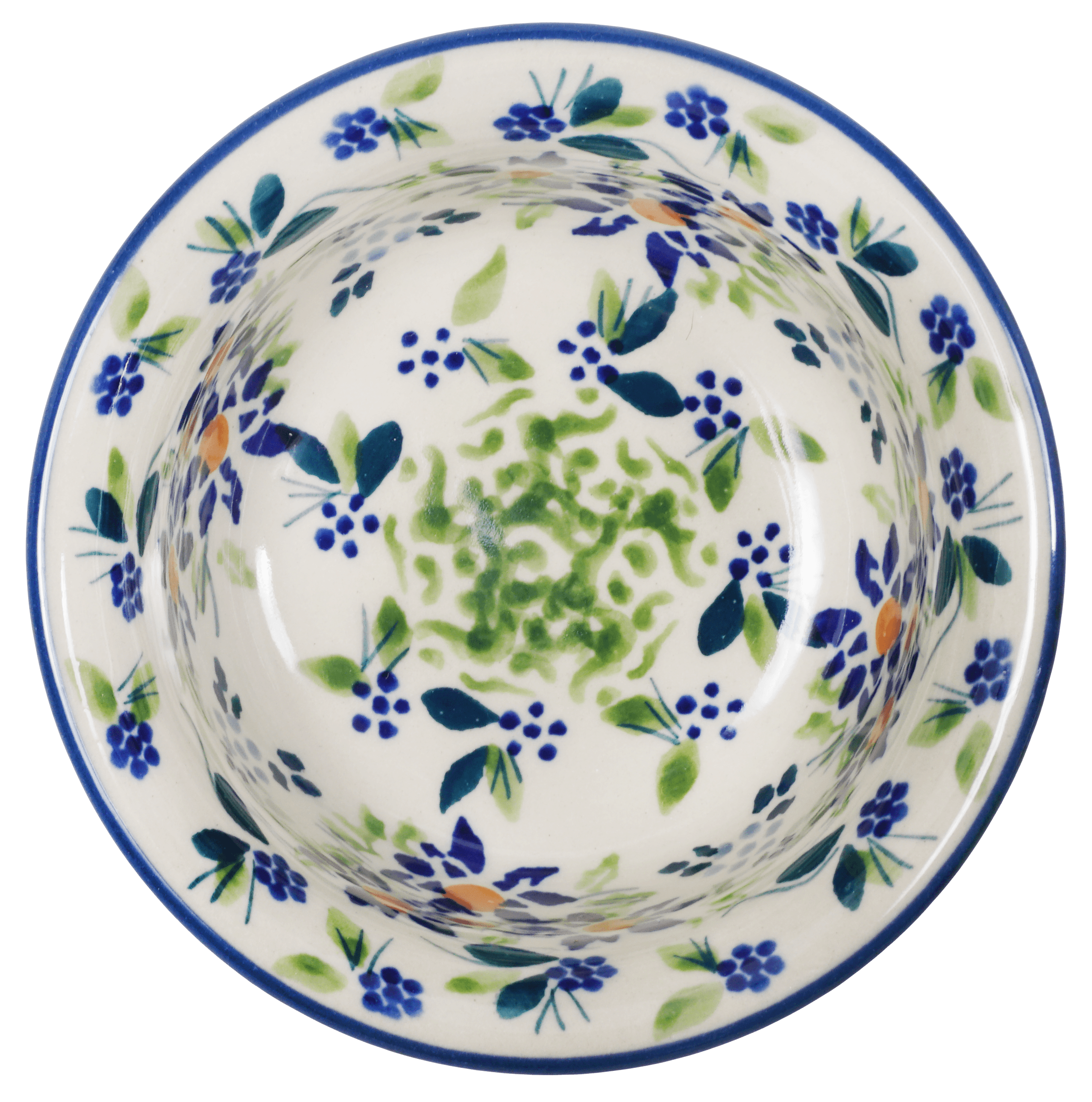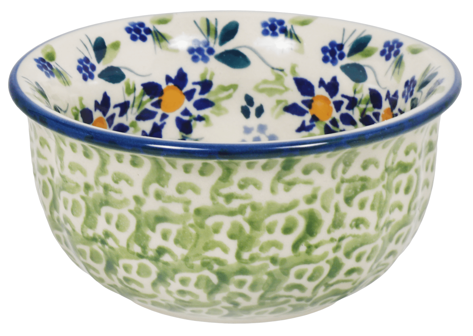 Imagine a splash of floral elegance gracing your dinner table, bringing with it a story of artistry and craftsmanship. The Manufaktura Polish Pottery Bowl in the "Garden Splendor" pattern does just that. Measuring a cozy 3.5 inches with a charming depth of 2 inches, this bowl is not just a vessel but a portal to a world of blooming flowers set against a serene white backdrop, highlighted with touches of blue, yellow, green, and gold. The slightly scalloped edges add a touch of whimsy, making it perfect for serving dips or as a delightful ramekin for your culinary creations.