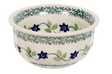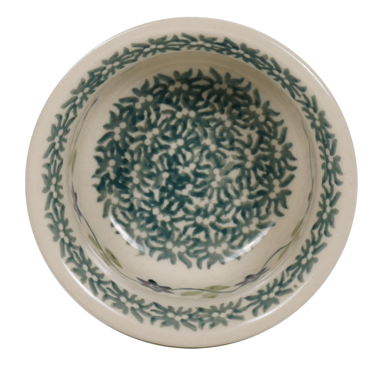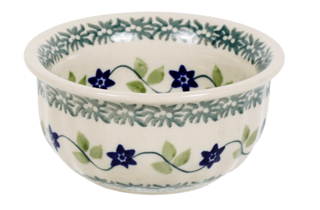 Step into the enchanting world of Polish craftsmanship with the Manufaktura Polish Pottery Bowl, a splendid example of traditional artistry blended with functional elegance. This charming 3.5-inch round bowl is more than just a vessel; it's a canvas showcasing the intricate "Woven Starflowers" pattern. The design features a delightful dance of star-shaped flowers and trios of green leaves, connected by slender teal vines, all set against a crisp white background. Crafted in the heart of Boleslawiec, Poland, this bowl reflects a rich heritage of pottery making, brought to life by the skilled hands of local artisans using the time-honored hand-stamping technique known as "punching."