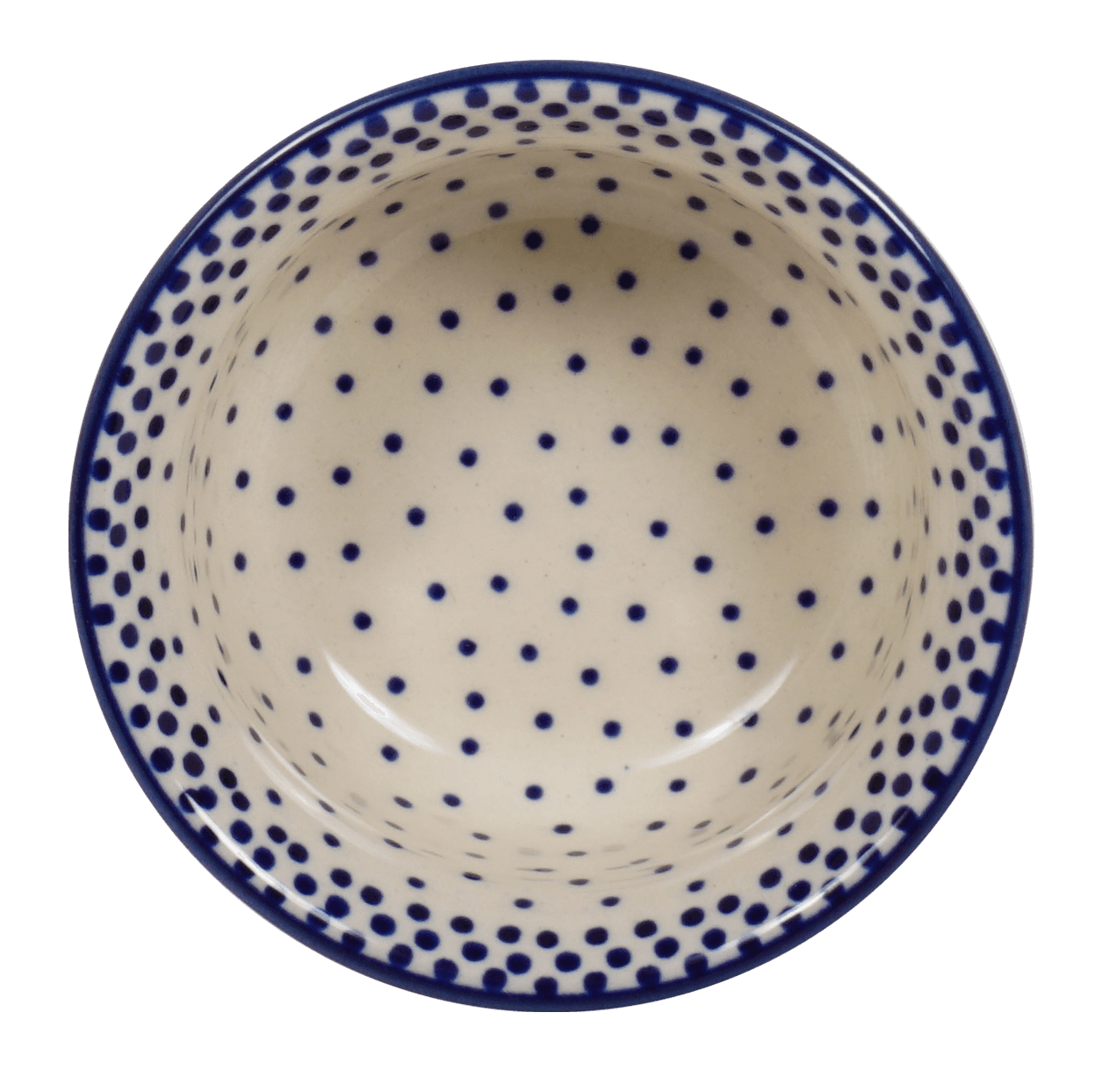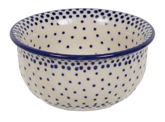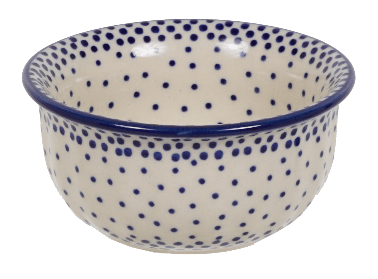 Imagine a touch of elegance that transforms your dining experience with every meal. The Polish Pottery Bowl from Manufaktura, measuring a quaint 3.5 inches, is not just any bowl—it's a canvas of artistry and tradition. Crafted in the heart of Boleslawiec, Poland, this delightful piece is hand-painted in the "Misty Blue" pattern. Picture a serene white backdrop sprinkled with delicate blue dots, each one placed with precision by skilled artisans. This bowl, perfect as a ramekin or dipping bowl, features soft, scalloped indentations along its sides, adding a touch of whimsy to its classic round shape.