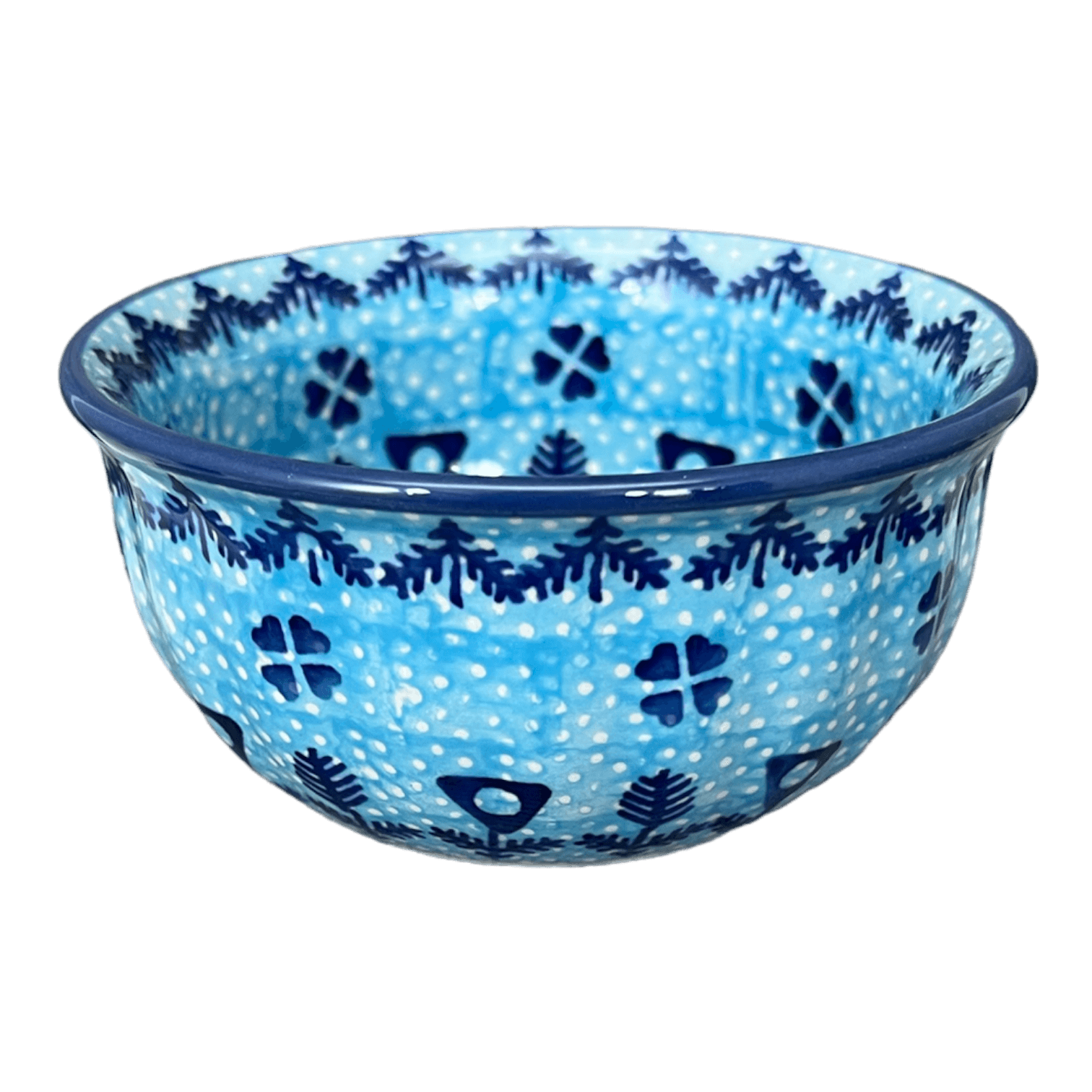 Introducing the Polish Pottery 4.5" Bowl by Manufaktura in the captivating "Alpine Blues" pattern (DSN). This isn't just any ordinary bowl - it's a versatile piece that adds a touch of charm to any table setting. Perfect for dips or condiments, this bowl is both functional and fabulous!