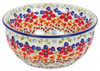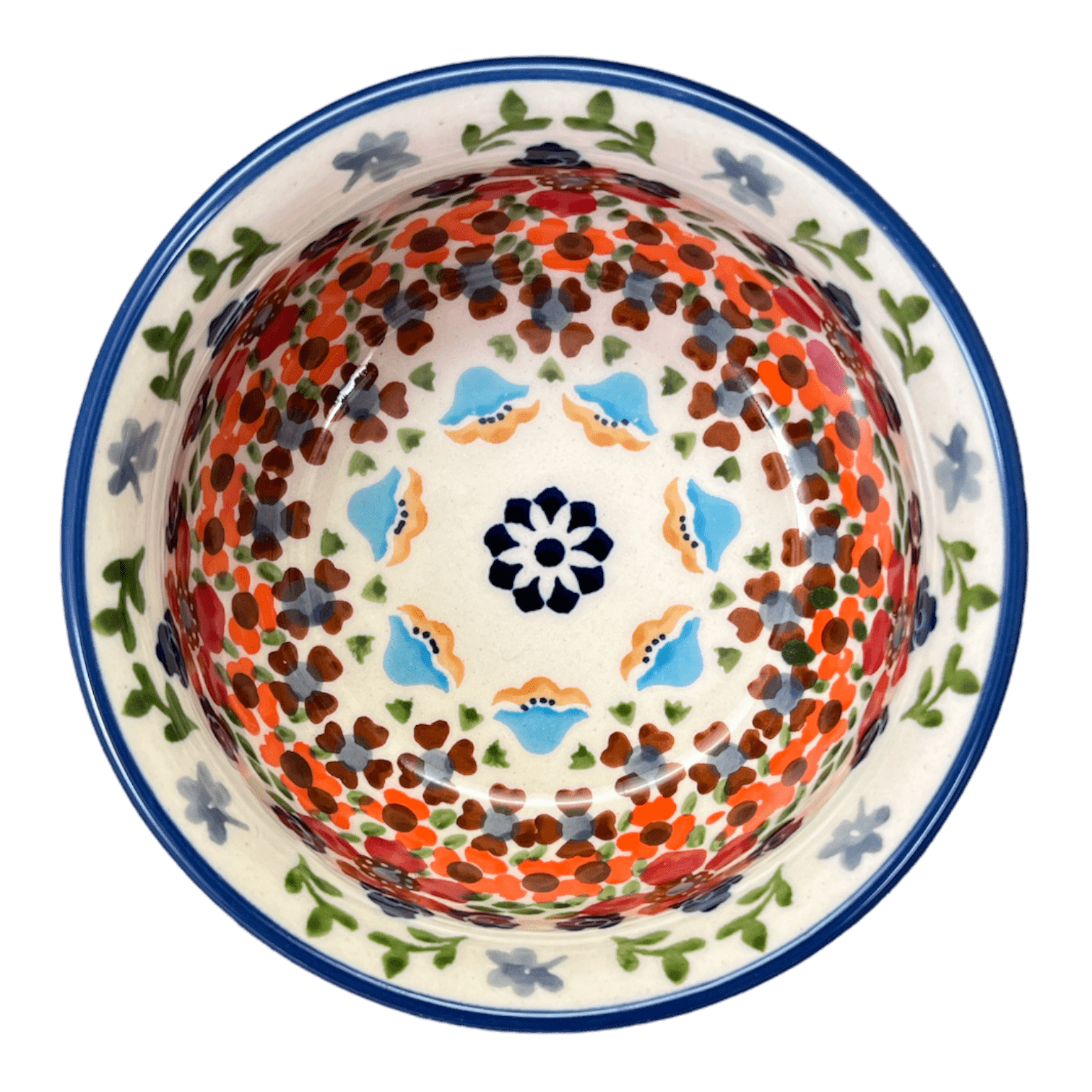Introducing the stunning Polish Pottery 4.5" Bowl by Manufaktura, now available in the vibrant "Stellar Celebration" pattern (P309)! This little bowl is not only great for dips or condiments, but it also adds a splash of color and excitement to any table setting.