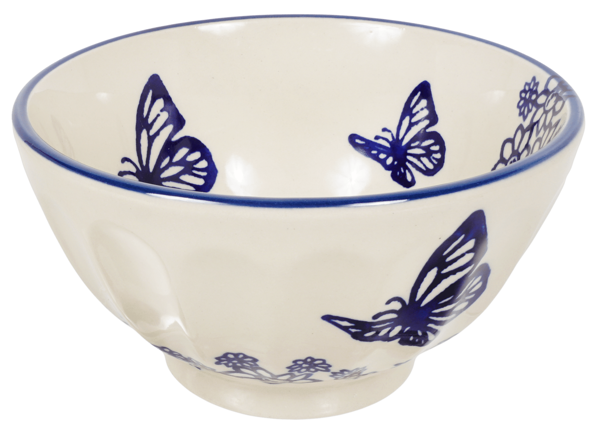 The "Butterfly Garden" pattern itself is a celebration of nature, capturing the essence of a serene garden with butterflies flitting among blooms. Set against a crisp white background, the design showcases a delicate band of white flowers traced in blue, with vibrant butterflies scattered across. Crafted using the traditional "punching" technique, each piece is a testament to the skill of Manufaktura's artisans, ensuring that no two pieces are exactly alike. This technique allows for a wonderful variety in patterns, making each bowl a unique work of art. Whether used for daily dining or special occasions, these bowls are sure to spark conversations and admiration.