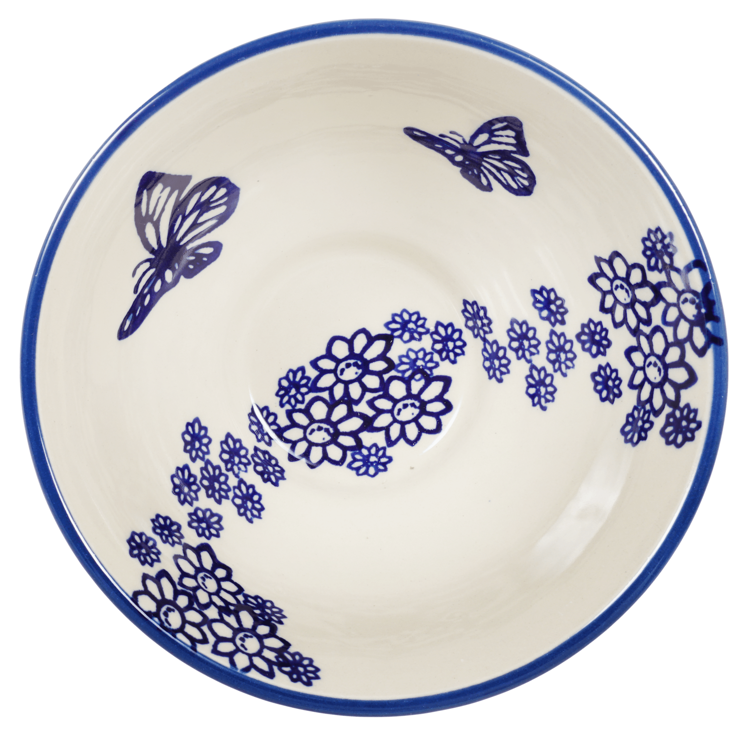 Imagine bringing a touch of whimsical elegance to your everyday meals with the stunning Polish Pottery Bowl from Manufaktura, adorned with the delightful "Butterfly Garden" pattern. Perfectly sized at 5.5 inches, this round, fancy bowl is your new go-to for anything from steaming soups to chilled ice cream. Its unique design features a broad top and a chic, narrow pedestal, elevating your dining table setup instantly. Not just pretty to look at, these bowls are meticulously crafted to nestle into your Soup & Sandwich/Breakfast Plates, inviting you to play mix and match and create a tableau of color and charm on your table!