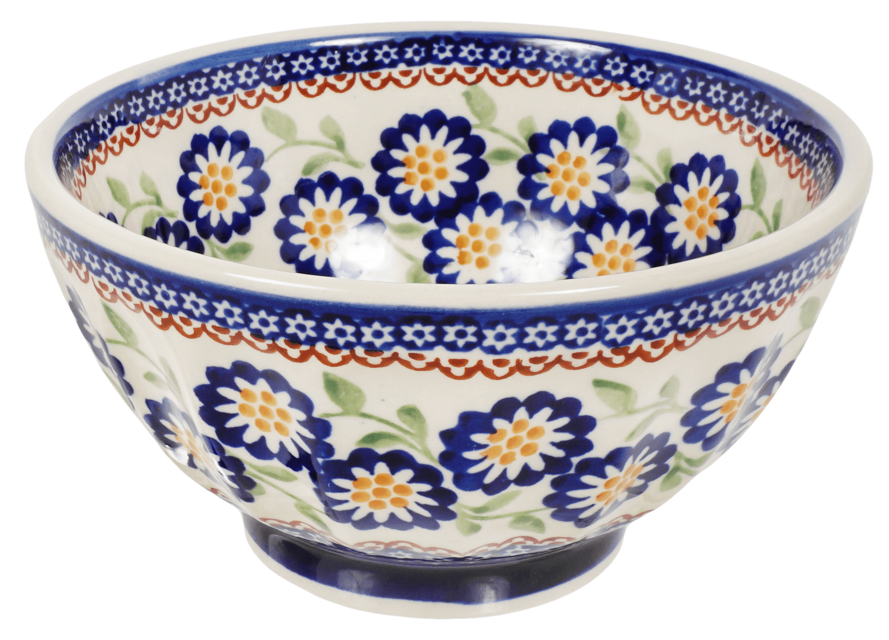 Imagine setting your table with a touch of artistry that captivates the eye and sparks conversation! Introducing the Polish Pottery Bowl from Manufaktura, crafted in the heartwarming "Mums the Word" pattern. At 5.5 inches, this round, fancy bowl is not just a dish but a centerpiece of culinary art. Designed for versatility, it's perfect for everything from a hearty soup to a delightful serving of ice cream. The unique ridged design, broad at the top and tapering to a narrow pedestal, adds an elegant charm that enhances any meal, making these bowls a stellar addition to your dining collection.