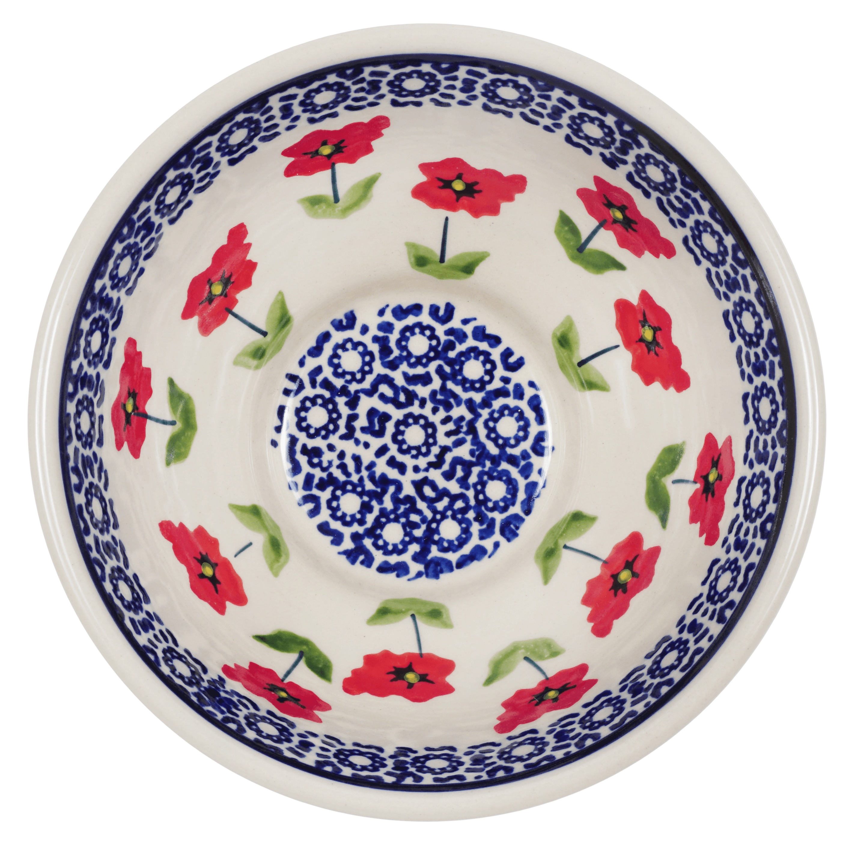 Introducing the Polish Pottery 5.5" Fancy Bowl by Manufaktura in the delightful "Poppy Garden" pattern (EJ01). These bowls are not just your ordinary bowls, they are the perfect combination of functionality and beauty. Whether you're enjoying a warm bowl of soup, a refreshing bowl of cereal, a delectable scoop of ice cream, or even some tasty dips, these bowls will elevate your dining experience to a whole new level!