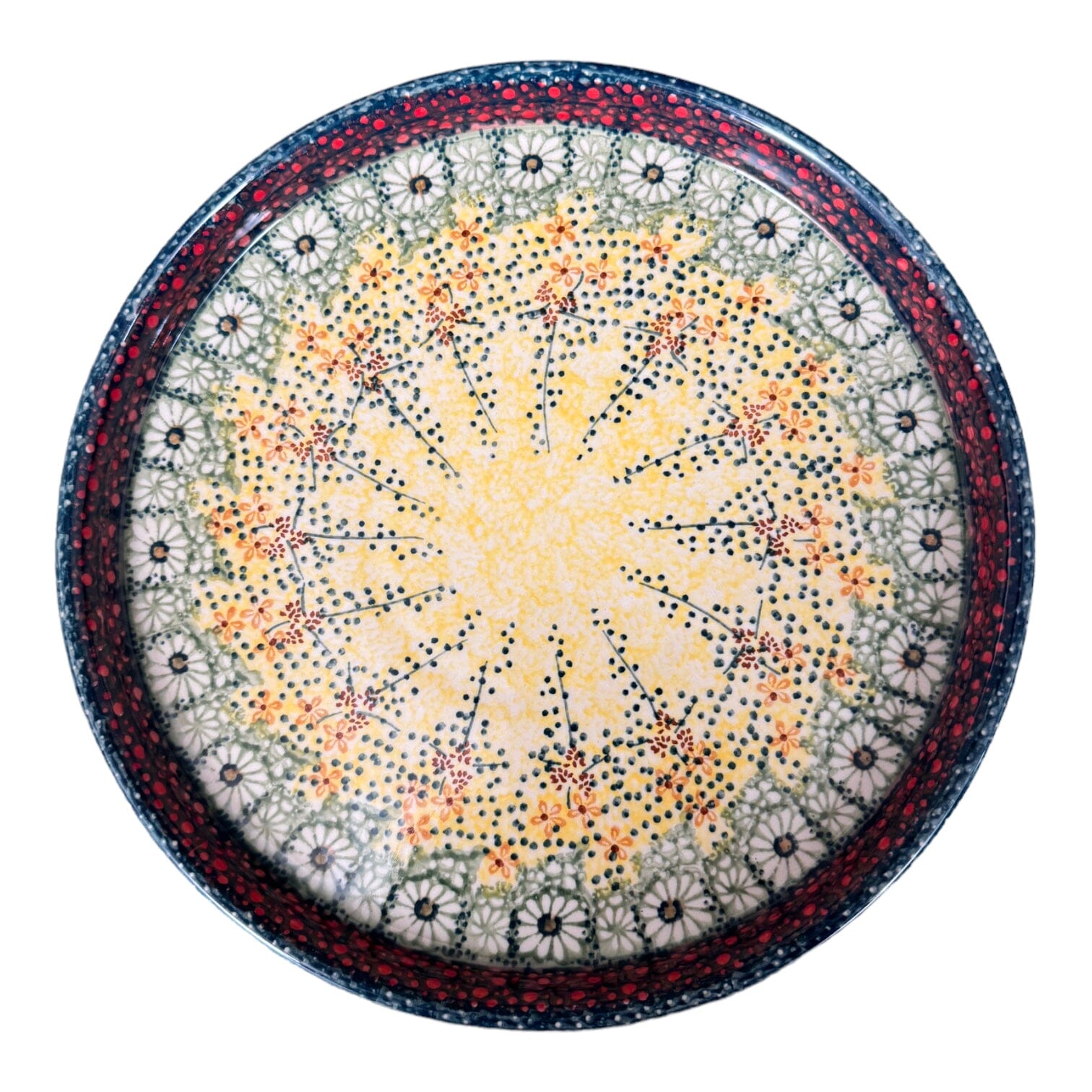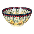 Imagine a delightful burst of sunshine brightening your dining table with each meal! Introducing the "Sunshine Grotto" Polish Pottery Bowl from Manufaktura, crafted in the heart of Boleslawiec, Poland. This charming 5.5" round bowl, adorned with a vibrant pattern of yellow, green, and red, brings a splash of color and joy to any setting. Perfect for serving everything from hearty soups to scrumptious ice cream, these bowls feature a unique ridged design, resting elegantly on a narrow pedestal. The intricate "Sunshine Grotto" pattern showcases a sunny yellow backdrop, bordered by light green and white flowers, with tiny teal dots and orange floral accents dancing playfully towards the center.