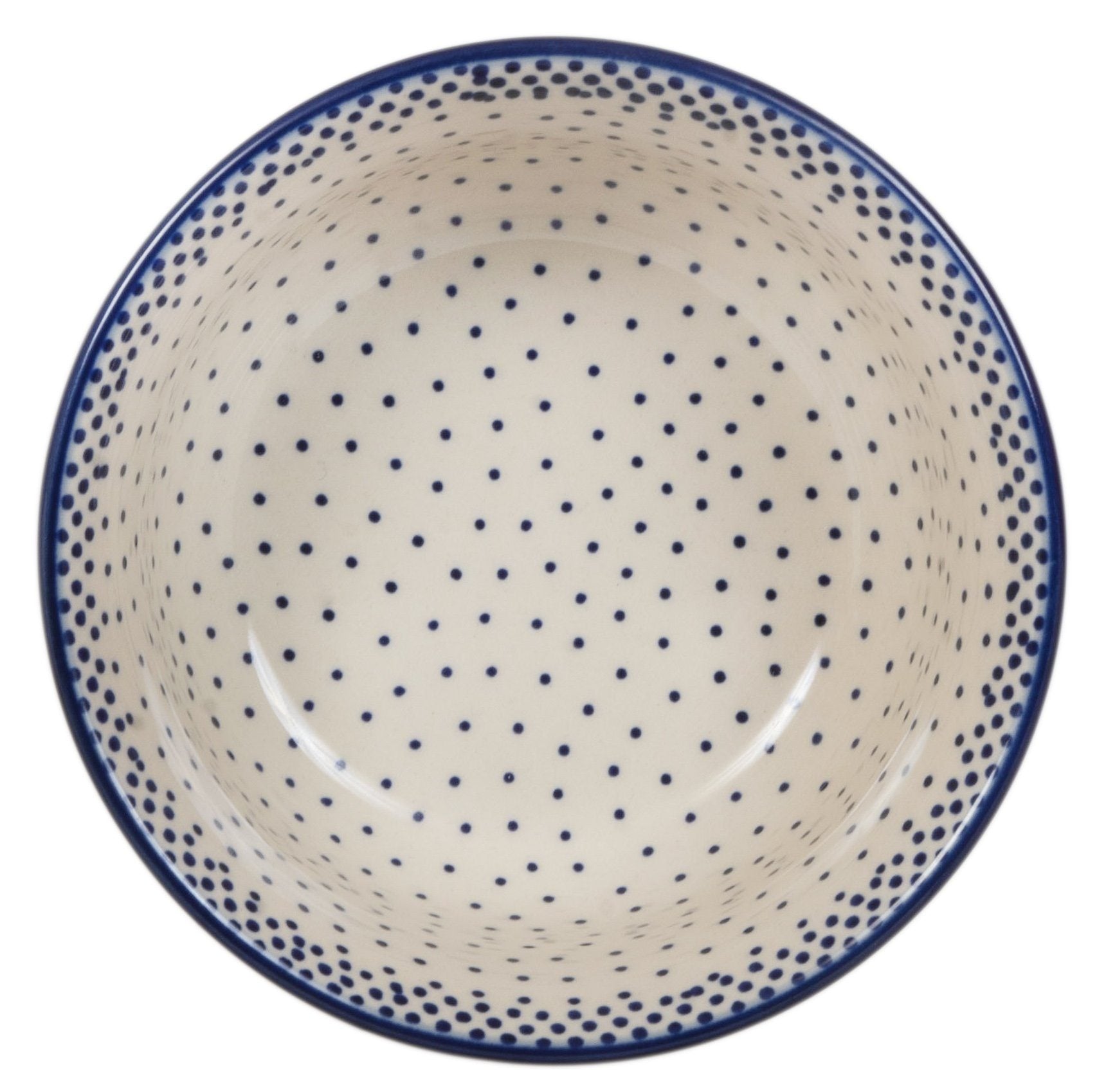 Imagine a touch of elegance and unique artistry right at your dining table with the exquisite "Misty Blue" Polish Pottery Bowl from Manufaktura. Crafted in the heart of Boleslawiec, Poland, this 5.5" round bowl is not just a vessel for your delicious soups, cereals, or ice creams; it's a piece of art. Each bowl is meticulously hand-painted by skilled artisans who bring the charming Misty Blue pattern to life. The design features a crisp white background dotted with serene blue specks, transforming every meal into a tranquil dining experience.
