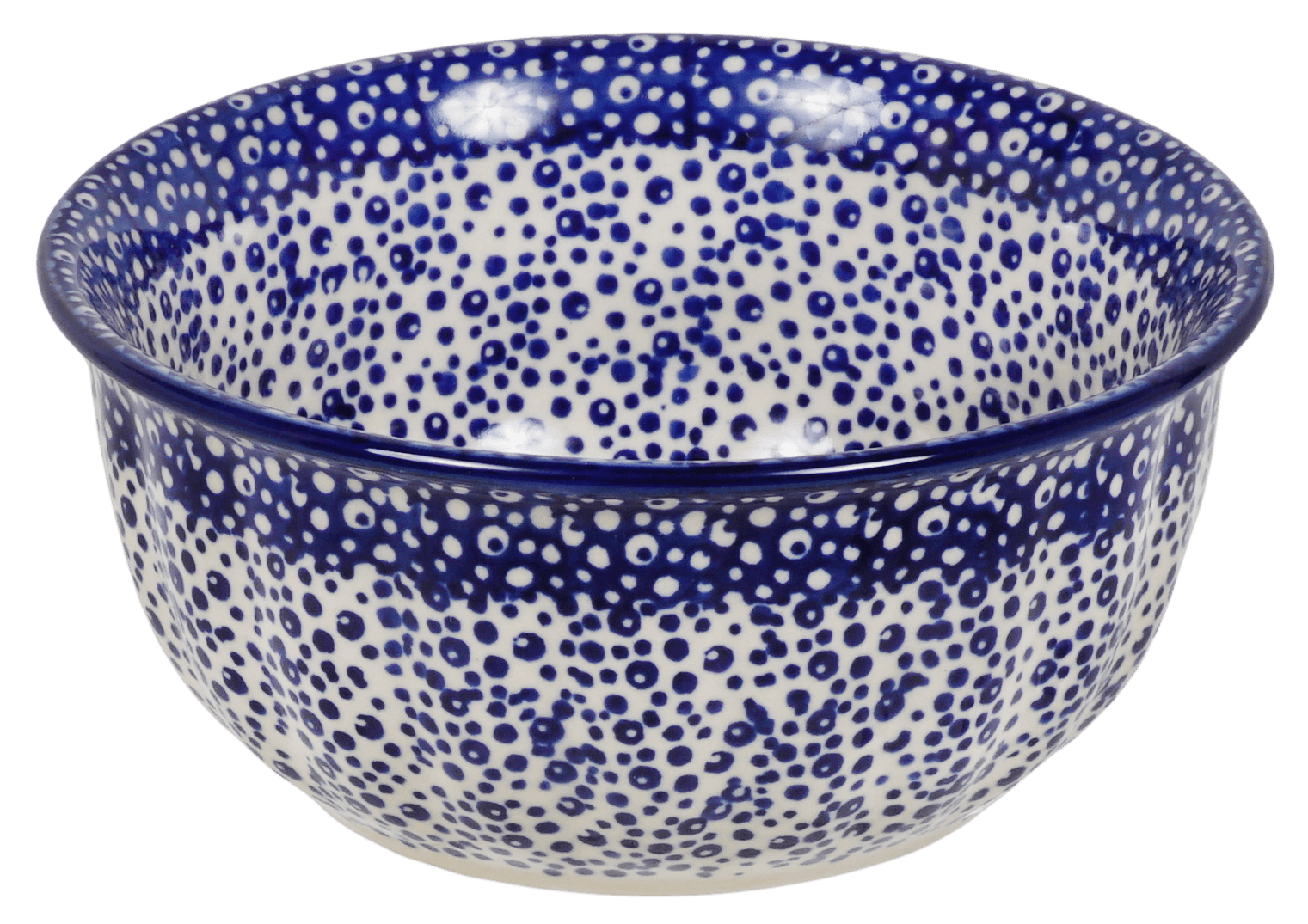 Dive into the delightful world of Polish pottery with this enchanting 5.5" bowl from Manufaktura, showcased in the mesmerizing "Sea Foam" pattern. Imagine a bowl not just made, but lovingly crafted in the storied workshops of Boleslawiec, Poland, where artisans are not mere workers but magicians of ceramics. This particular piece, perfect for brightening up your meal times, is ideal for a cozy soup on a rainy day, a fresh side salad, or even a delectable dessert just for you. The "Sea Foam" design, featuring playful bubbles set against a serene blue backdrop dotted with tiny white rings, evokes the soothing ebb and flow of the ocean's tides.