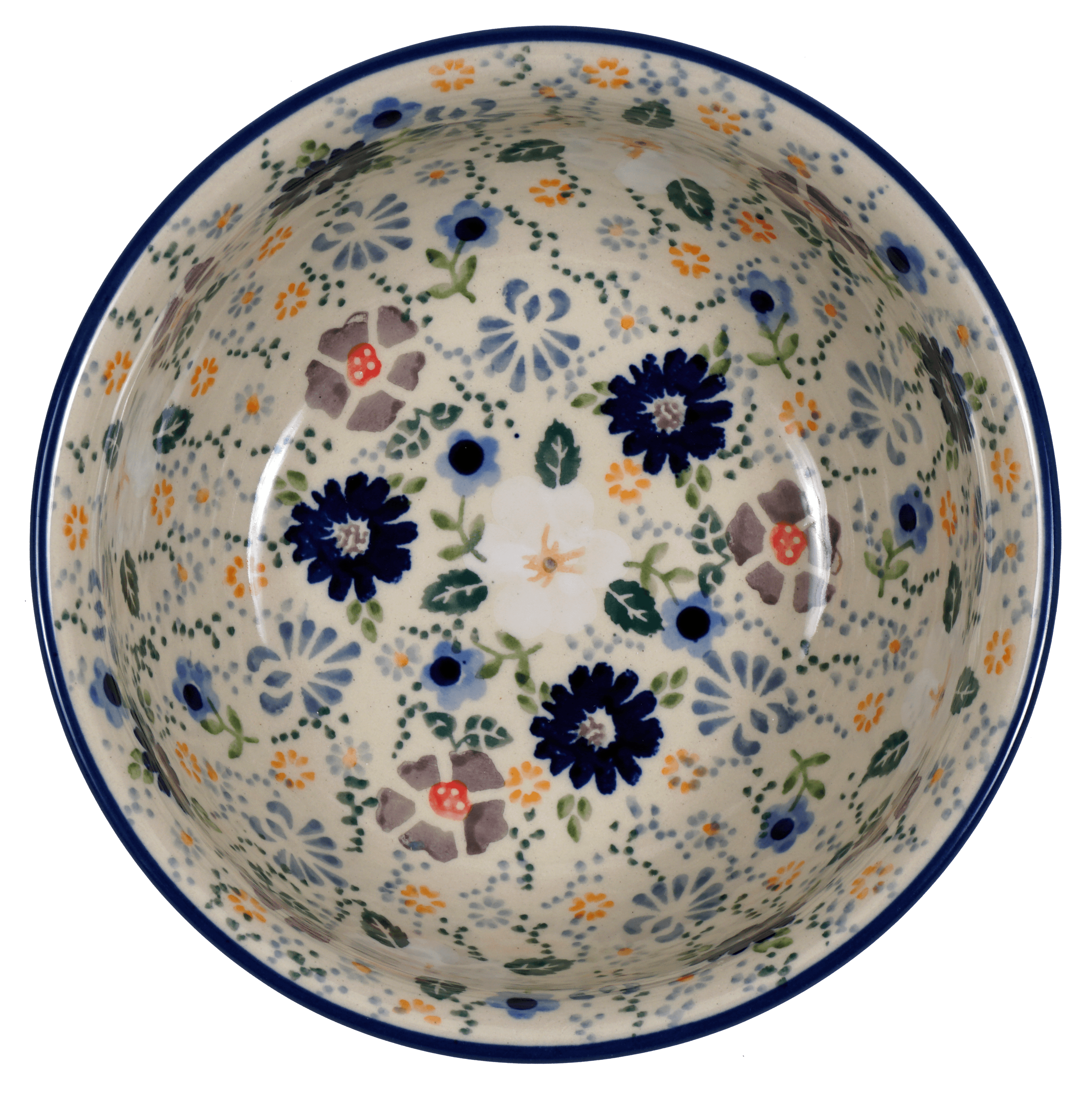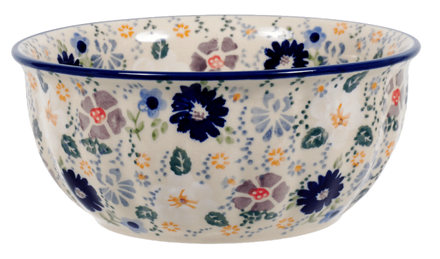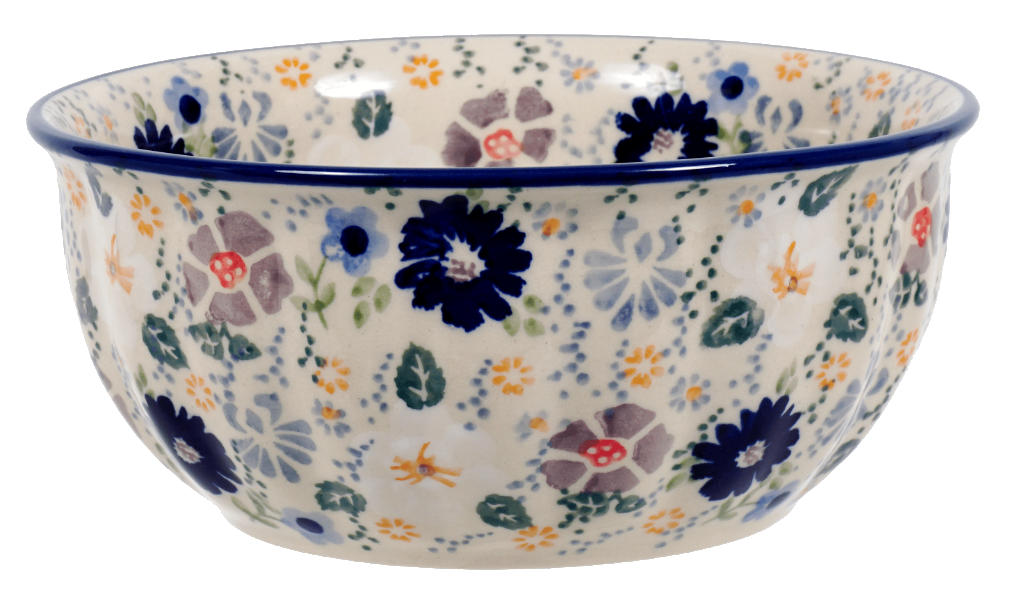 Immerse yourself in the enchanting world of Polish Pottery with the exquisite Manufaktura 6.5" Bowl in the captivating "Scattered Petals" pattern. Handcrafted with love in Boleslawiec, Poland, this charming bowl features a symphony of floral elegance painted against a pristine white background. Dark blue, gray, and light blue blossoms dance amidst verdant green leaves, creating a visual feast that’s sure to brighten any meal. Whether you're serving a hearty soup, a fresh salad, or mixing up your favorite dressing, this bowl turns every dish into a display of artful craftsmanship.