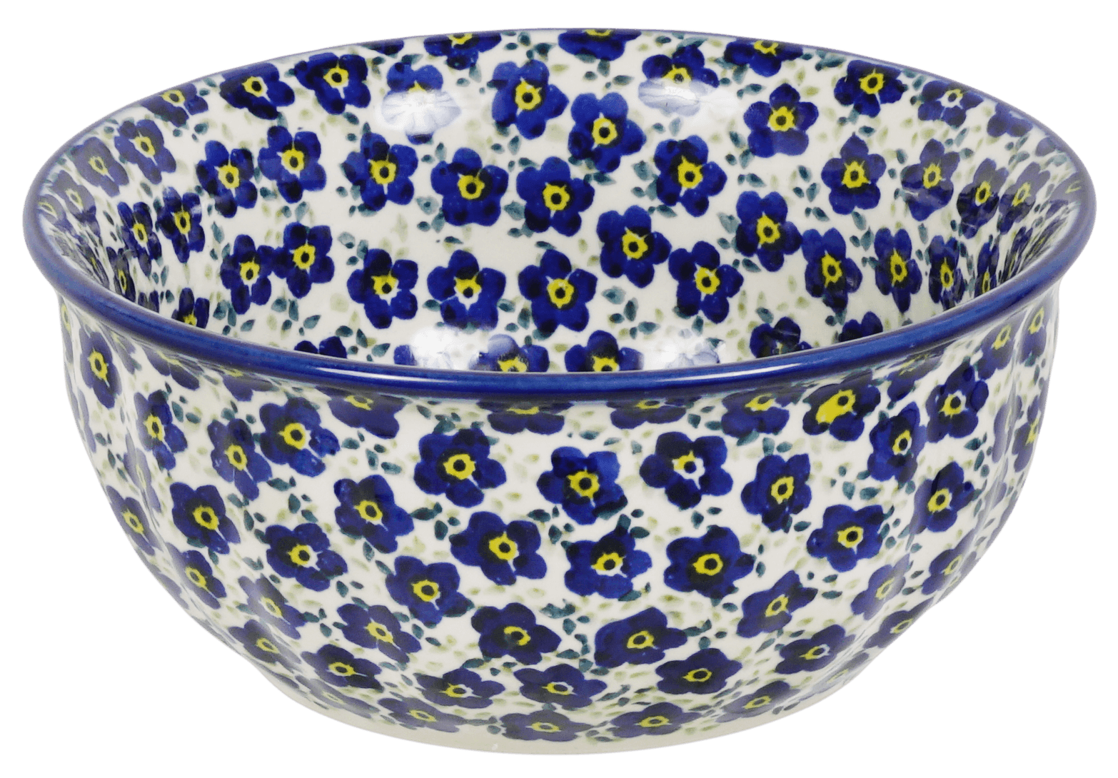 Step into a world of enchanting tableware with the Manufaktura 6.5" Polish Pottery Bowl, adorned in the mesmerizing "Floral Revival Blue" pattern. This delightful bowl is not just a vessel for your soups, salads, or pastas; it's a small canvas showcasing a beautiful dance of tiny teal green leaves and charming blue and yellow flowers, all set against a crisp white background. Crafted in the historic town of Boleslawiec, Poland, each bowl is a testament to the skill and creativity of the artisans. Perfect for both everyday use and special occasions, this bowl promises to bring a touch of artistic flair to your meal times.