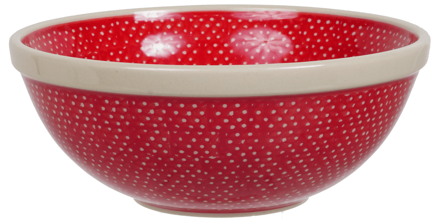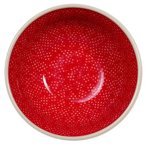 The "Red Sky at Night" pattern is a true work of art. With its design elements incorporating Dots in a predominantly Red color with accents in White, it is sure to catch the eye of anyone who sees it. Each bowl is carefully made and hand-painted in Boleslawiec, Poland by skilled artisans who take pride in their craft. The attention to detail is evident in every brushstroke, making each piece unique and special.