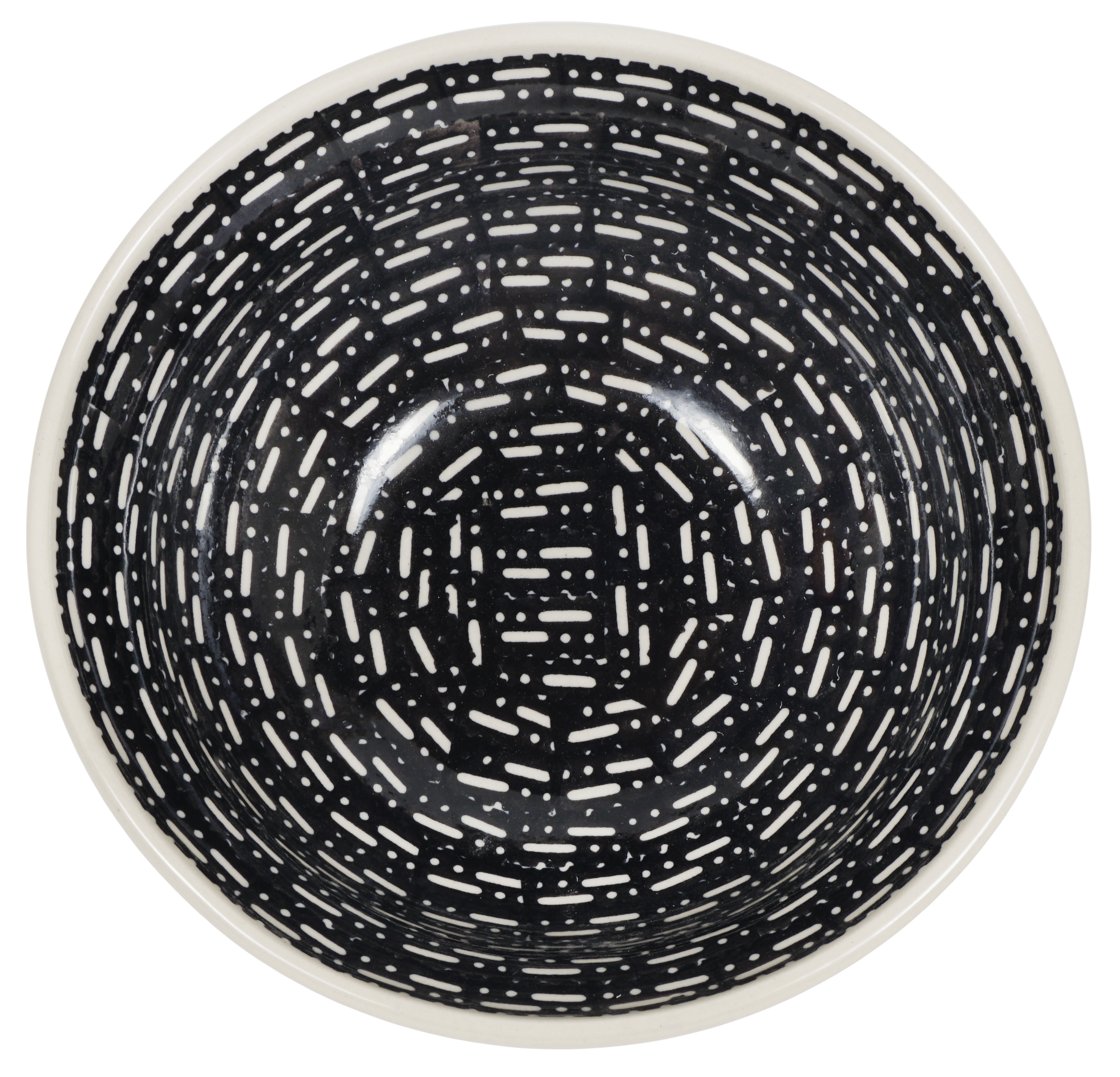 The "Metro" pattern is a true work of art, blending simplicity with elegance. The predominantly black background is adorned with delicate white dashes and dots, creating a mesmerizing design that is sure to catch the eye. This pattern is considered to be of the Traditional level of artistry, making it one of the most recognizable and beloved patterns in the world of Polish pottery.
